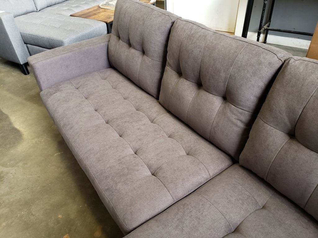BRAND NEW CHARCOAL TUFTED REVERSIBLE SECTIONAL SOFA - RETAIL $899, NEW IN BOX