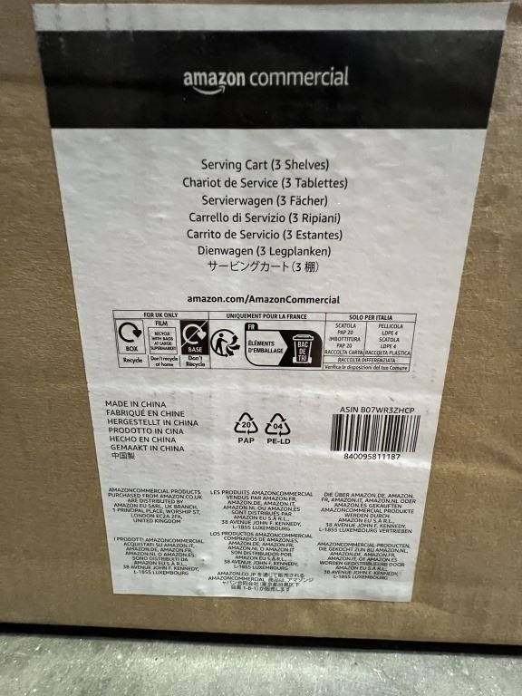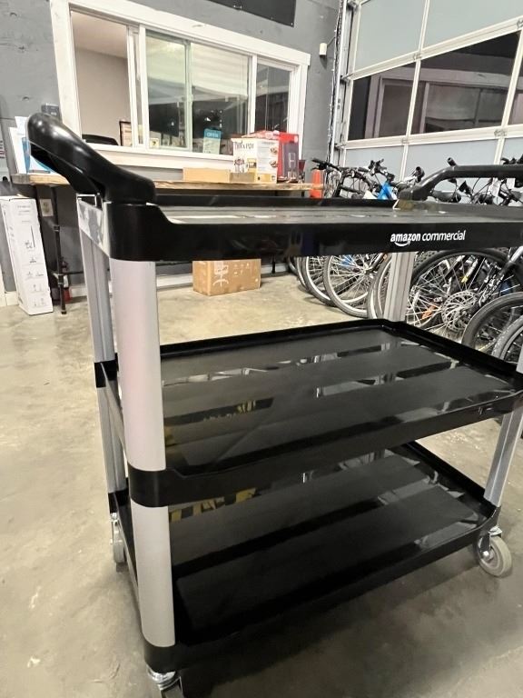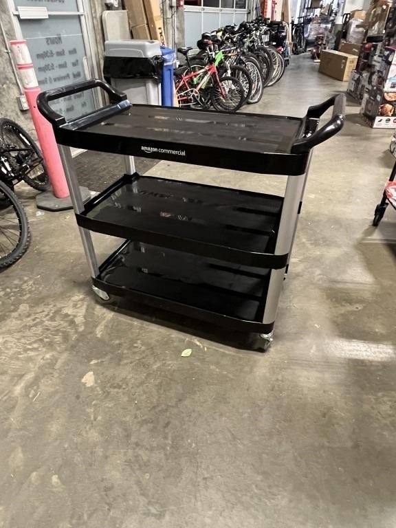 BRAND NEW COMMERCIAL SERVING/ SERVICE CART, 3 SHELF, WITH HEAVY DUTY CASTORS, 400LB CAPACITY, RETAIL $179