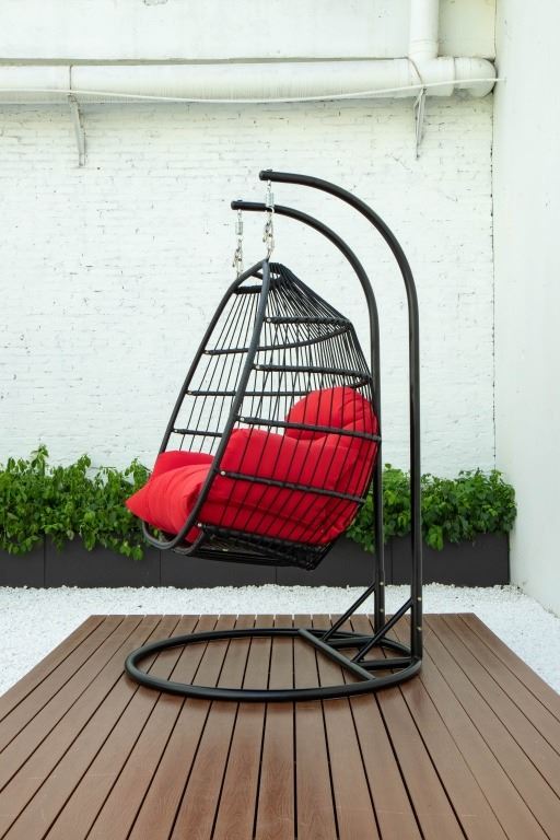 BRAND NEW DOUBLE HANGING EGG CHAIR - RETAIL $1969 W/ FOLDABLE FRAME, POWDER COATED STEEL FRAME, RATE