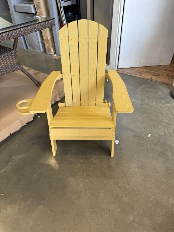BRAND NEW FOLDING ADIRONDACK CHAIR WITH CUPHOLDER, RETAIL $299, ECO-CONSCIOUS CONSTRUCTION, STAINLESS HARDWARE