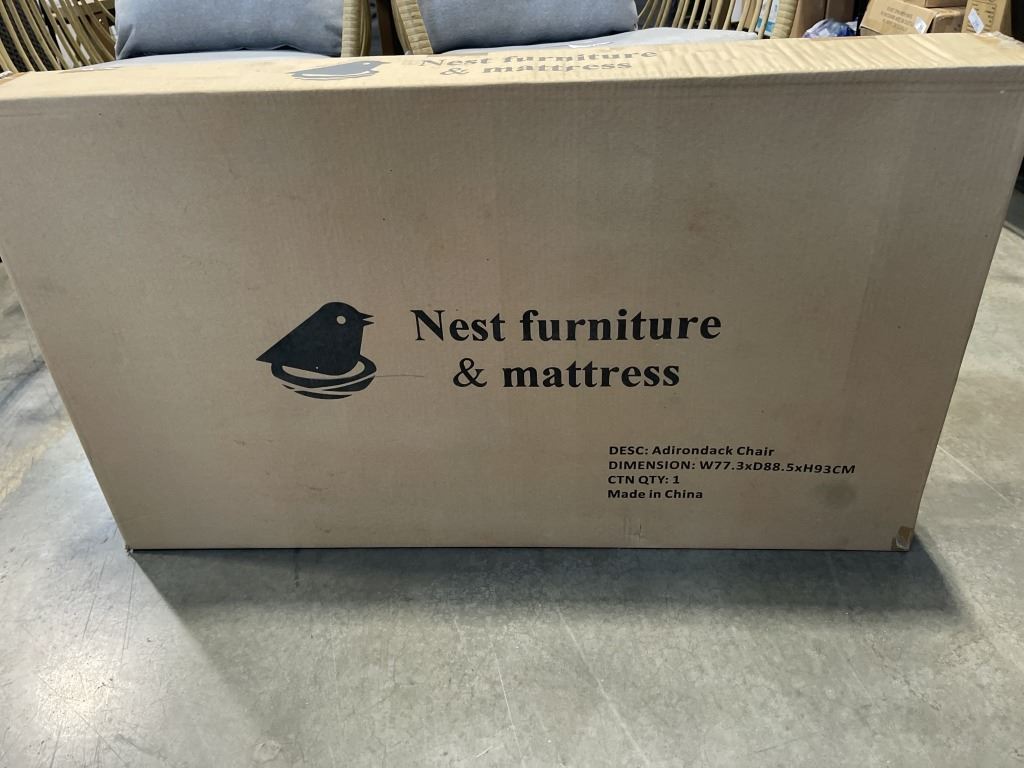 BRAND NEW FOLDING ADIRONDACK CHAIR WITH CUPHOLDER, RETAIL $299, ECO-CONSCIOUS CONSTRUCTION, STAINLES