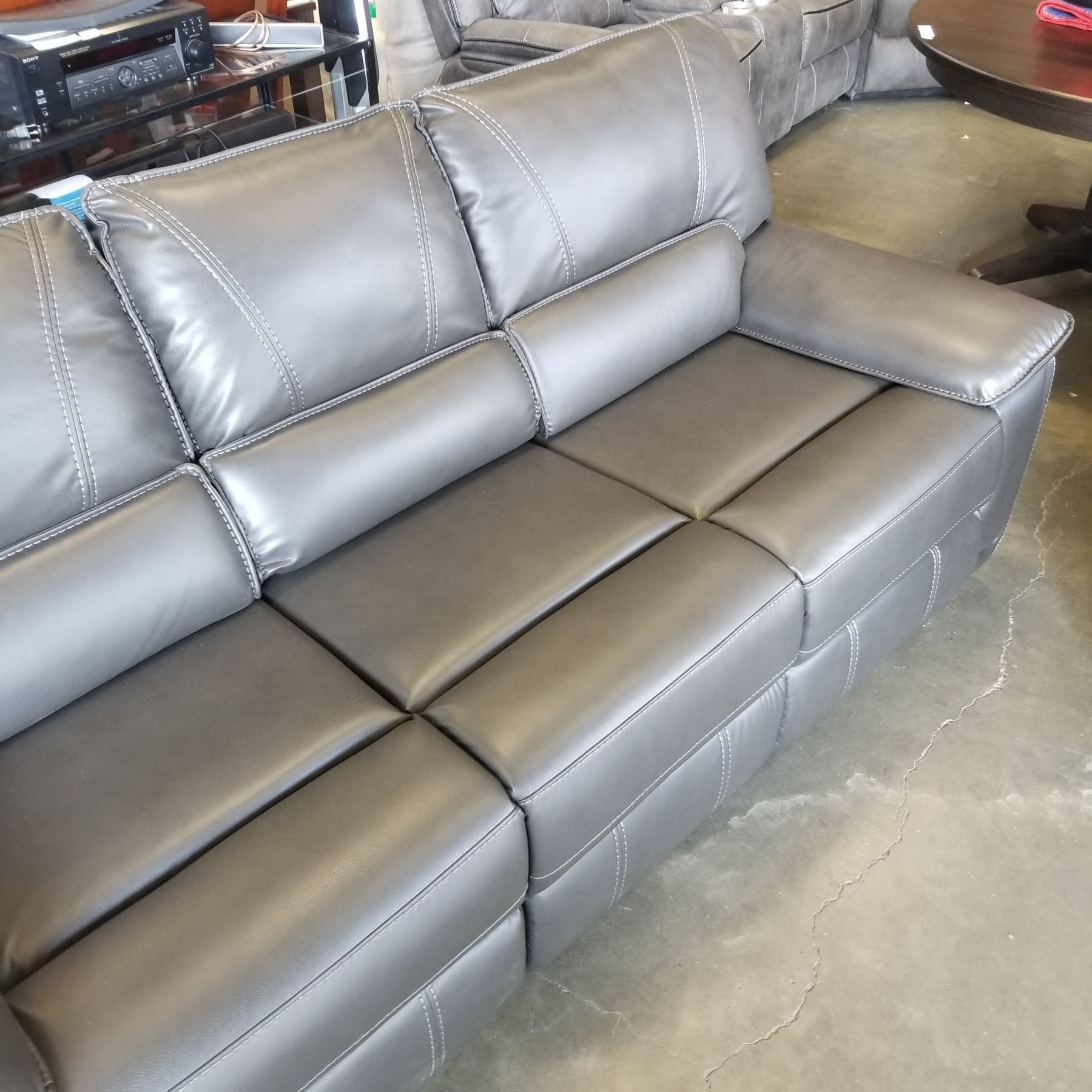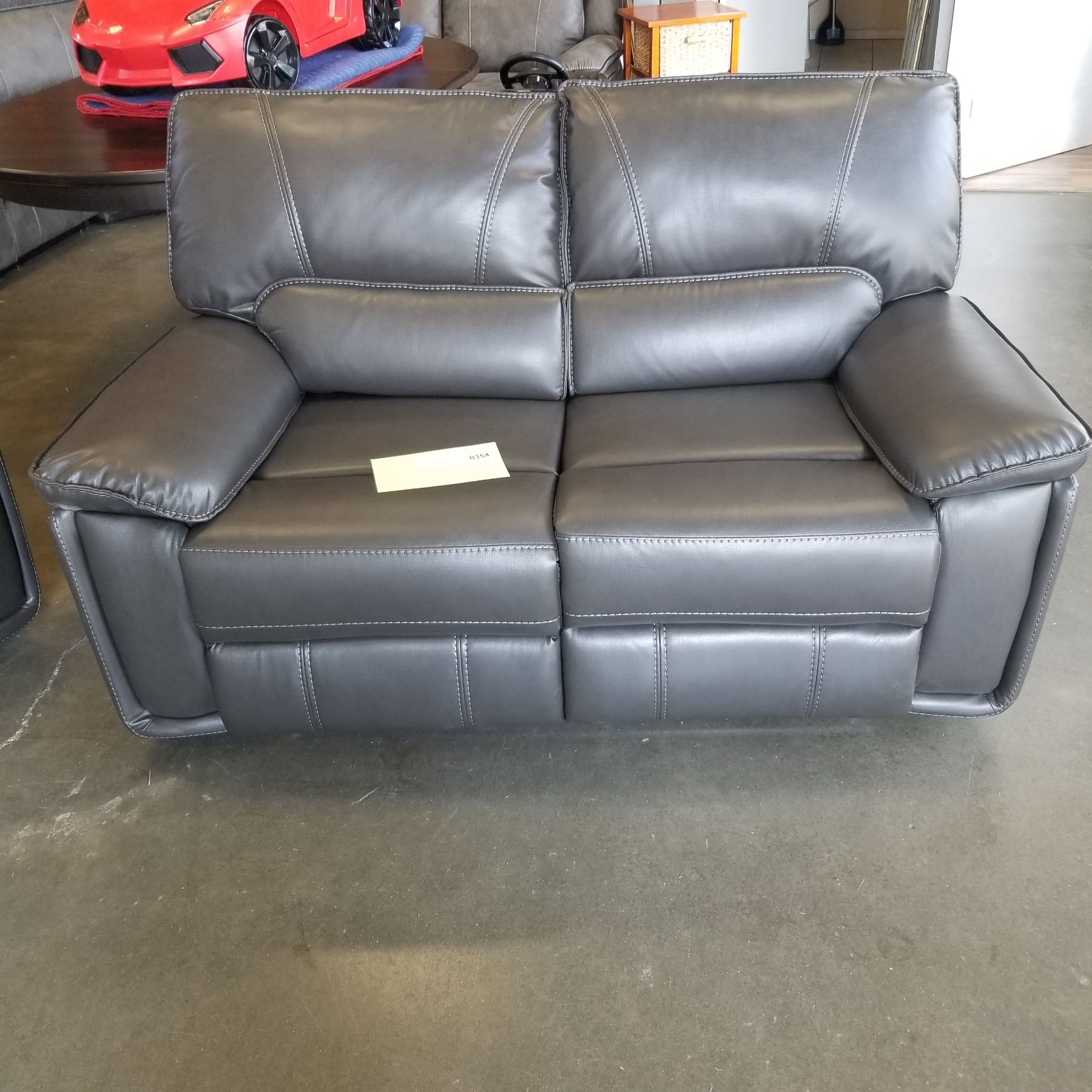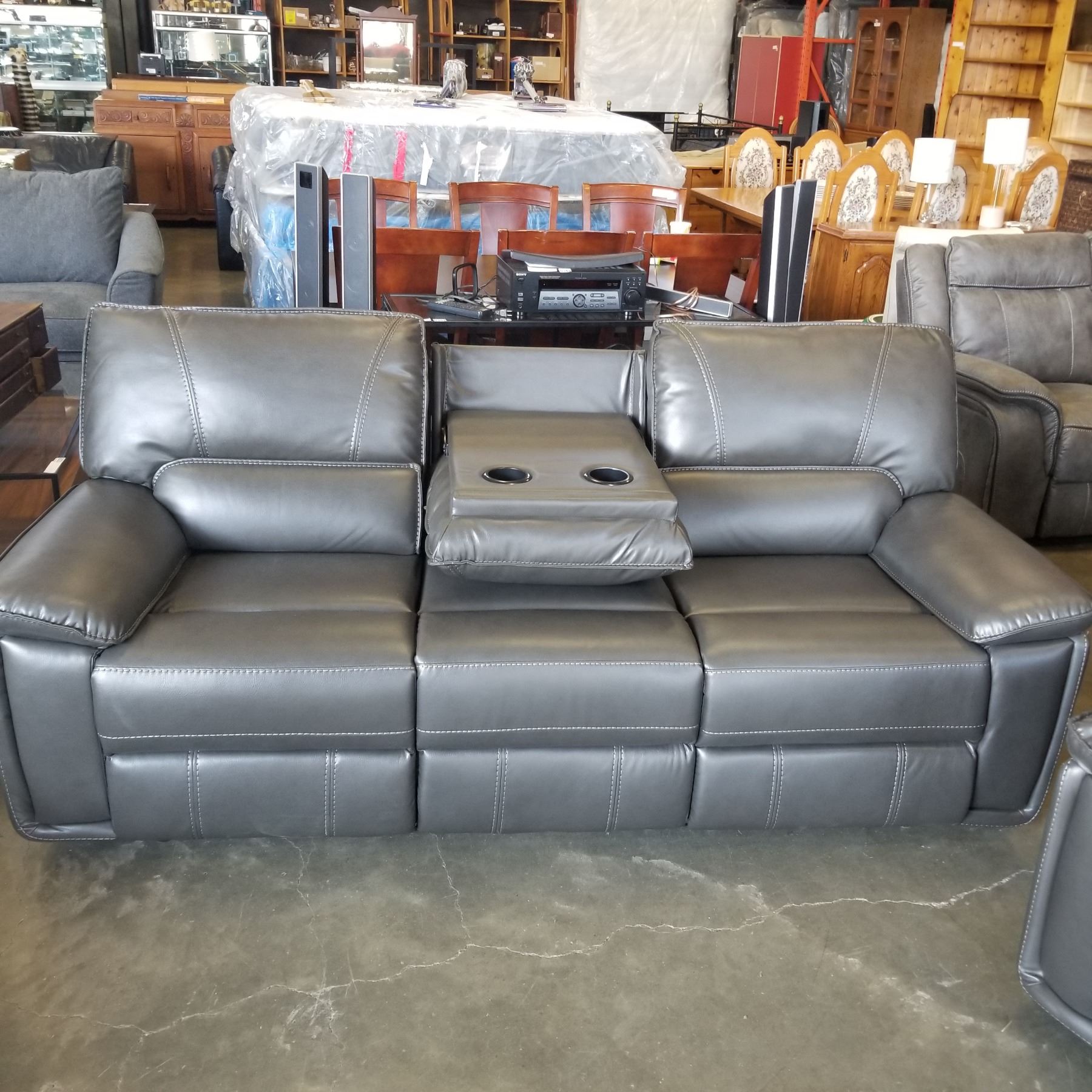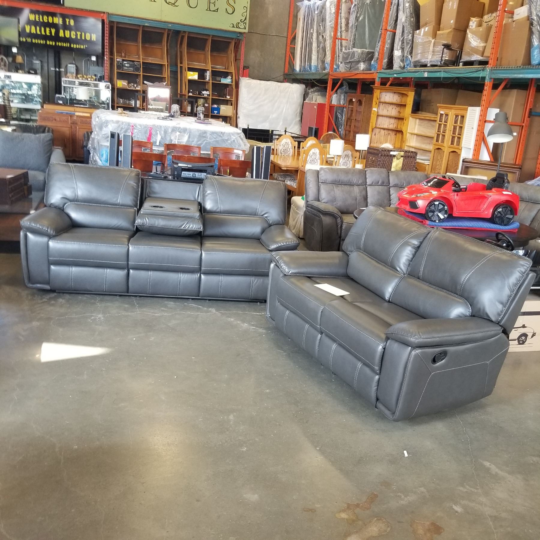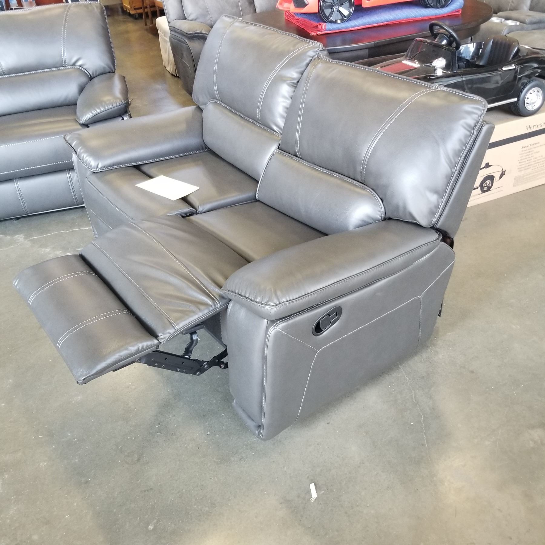 NEW GENUINE GREY STITCHED LEATHER DOUBLE RECLINING SOFA WITH FLIP DOWN CONSOLE, AND DOUBLE RECLINING LOVESEAT RETAIL $3699. ***BUYER TO RECEIVE A BRAND NEW SET IN BOXES, NOT A FLOOR MODEL!