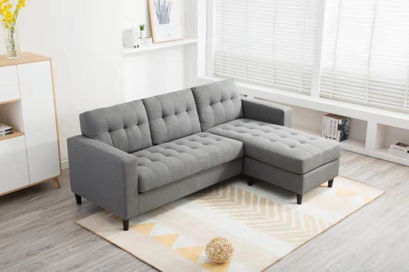 BRAND NEW GREY COTTEN LINEN TUFTED REVERSIBLE SECTIONAL SOFA - RETAIL $899, NEW IN BOX