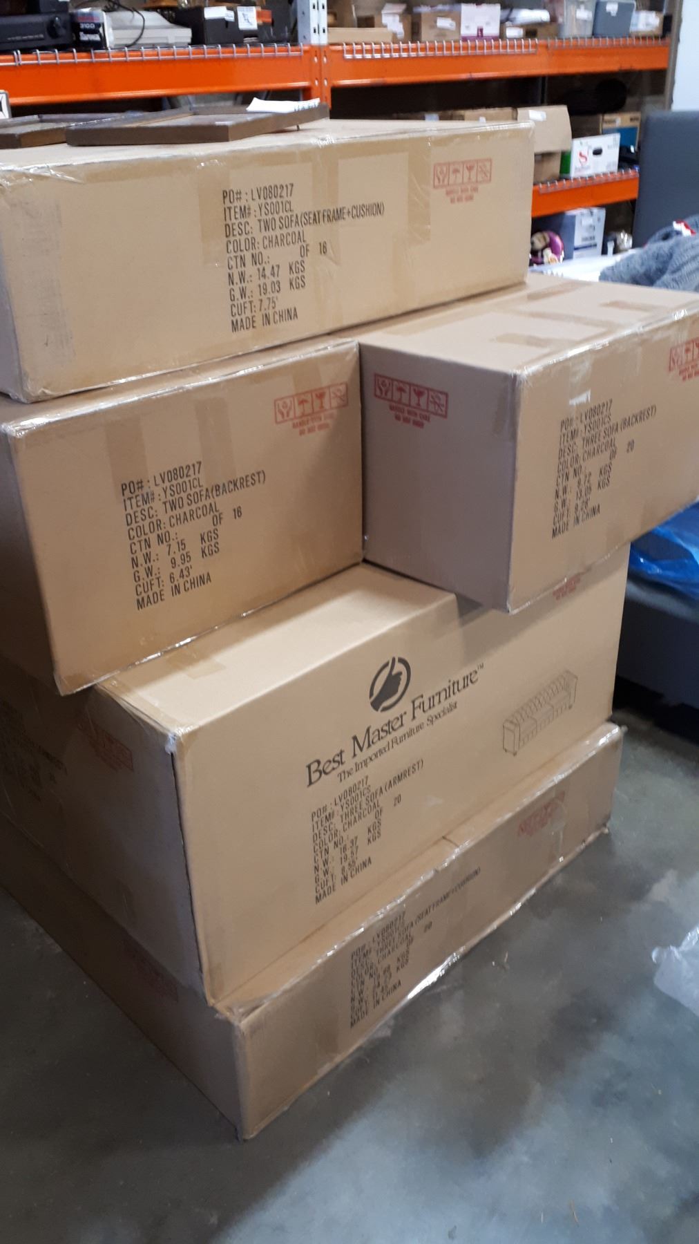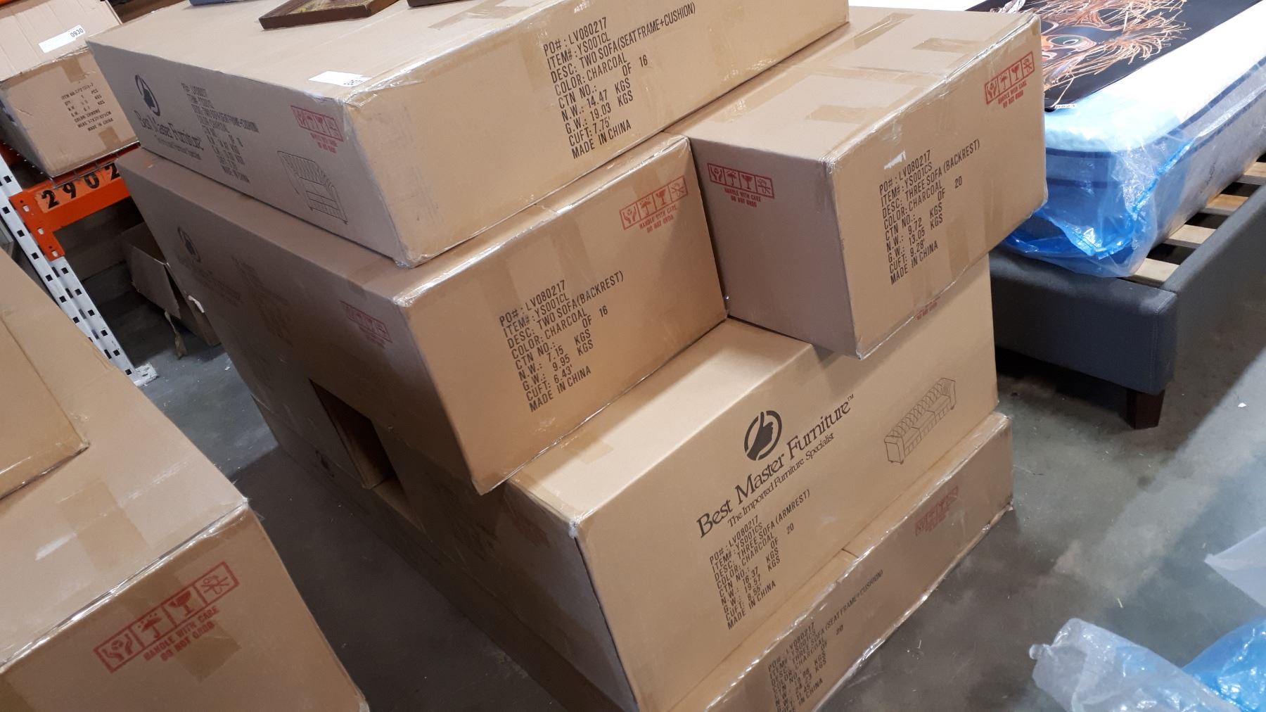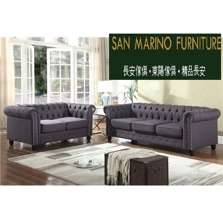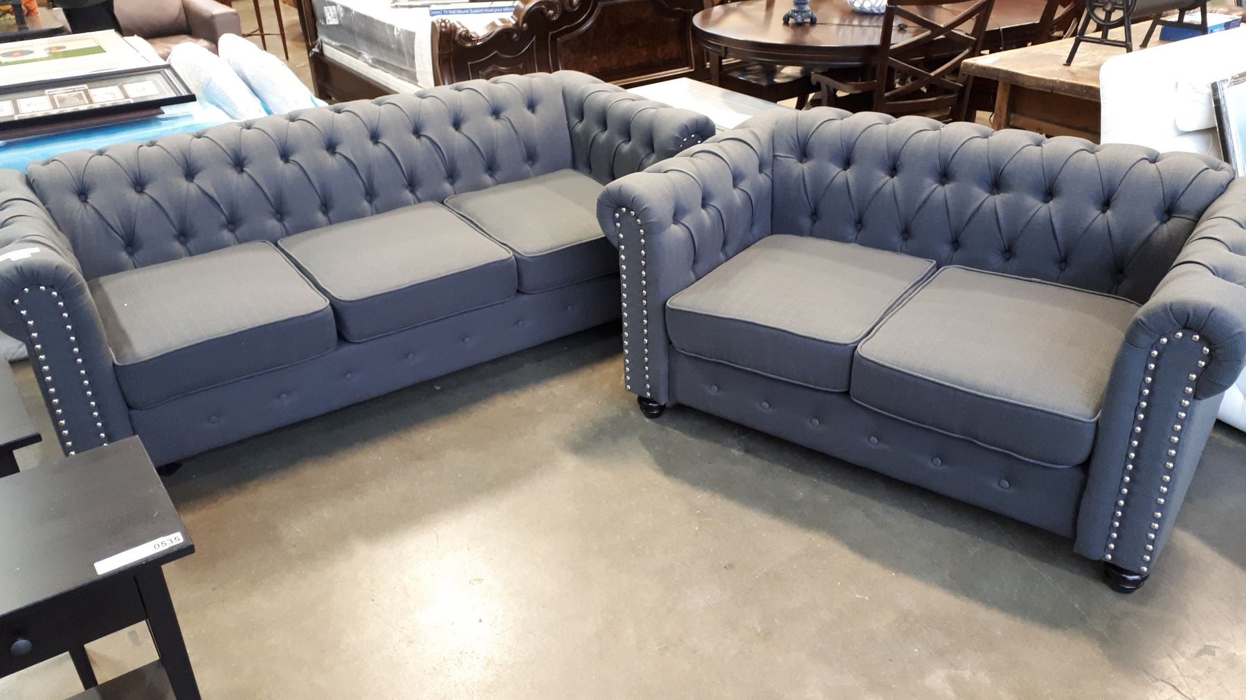 BRAND NEW GREY MODERN TUFTED SOFA AND LOVESEAT WITH NAILHEAD ACCENT, RETAIL $2499