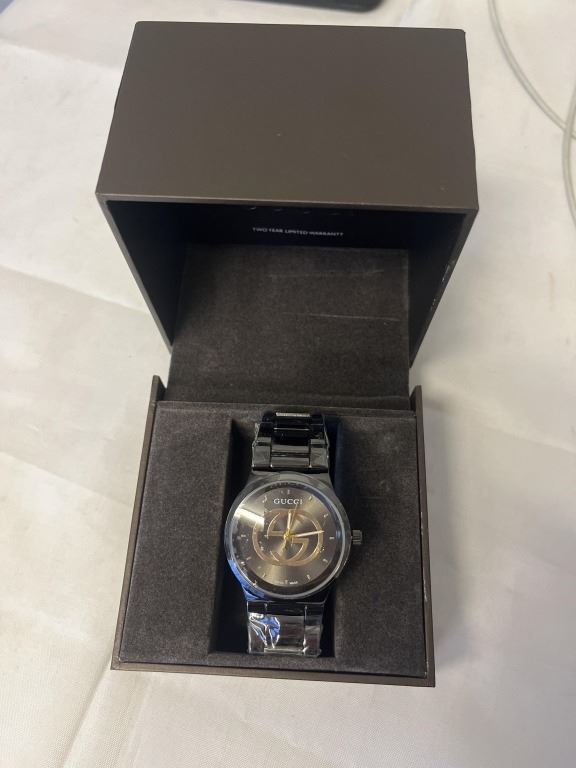 BRAND NEW GUCCI SWISS MADE WATCH, QUARTZ MARKED ALL STAINLESS STEEL 10ATM 7156 WORKING W/ BOX
