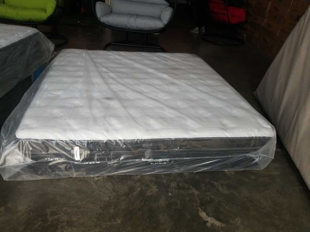 BRAND NEW KINGSIZE BEAUTYREST PLATINUM MATTRESS - BAG RIPPED AND SNAGGED TOP QUILT, DIRT SCUFF AT BOTTOM