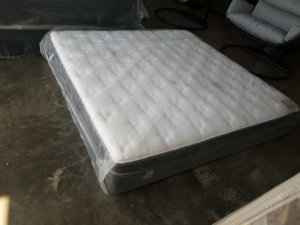 BRAND NEW KINGSIZE BEAUTYREST PLATINUM MATTRESS - BAG RIPPED AND SNAGGED TOP QUILT, DIRT SCUFF AT BO