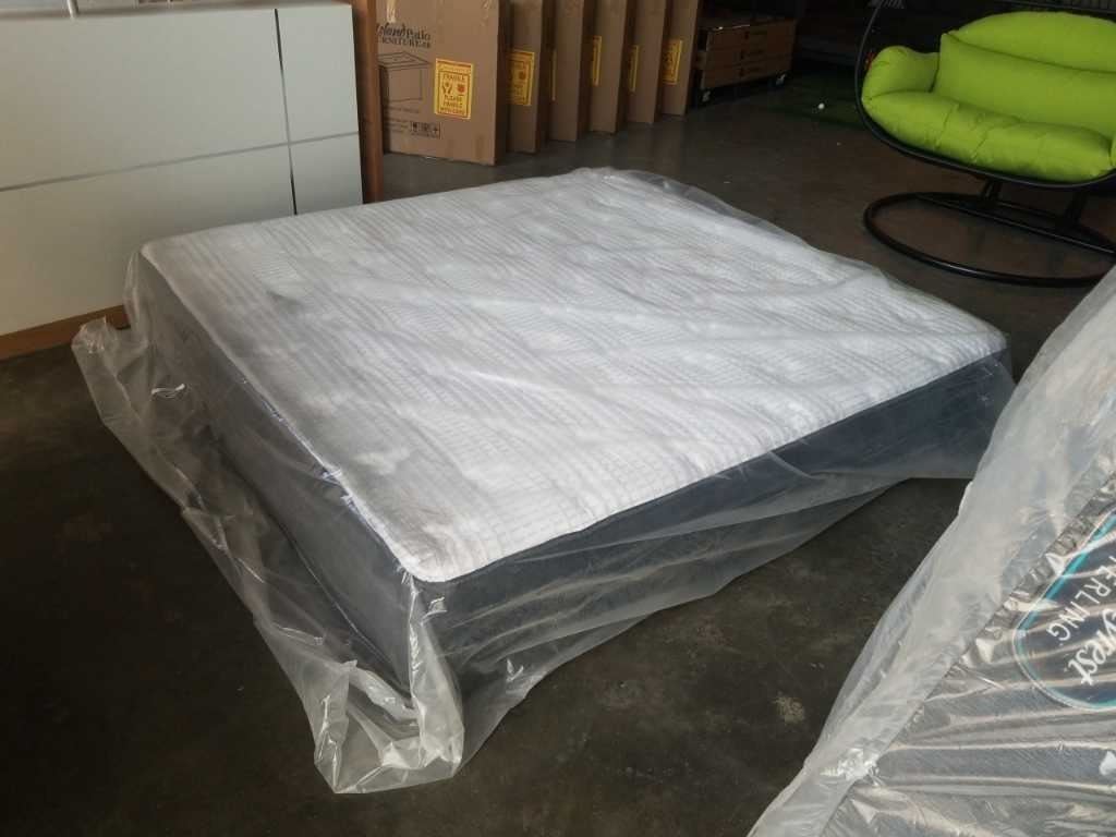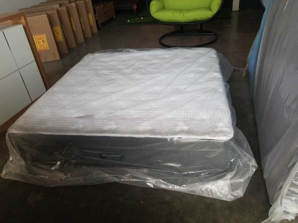 BRAND NEW KINGSIZE BEAUTYREST STERLING WILDER MATTRESS DIRT SCUFF AT FOOT OF BED