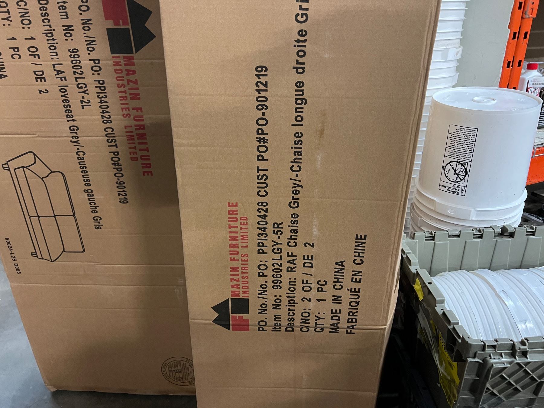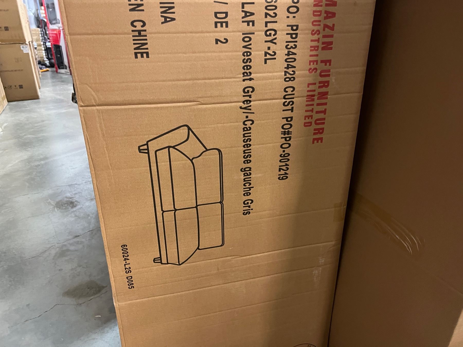 BRAND NEW MAZIN HOME COLLECTION RIGHT HAND FACING 2PC SECTIONAL W/ CHAISE IN LIGHT GREY - RETAIL $2499, NEW IN 2 BOXES