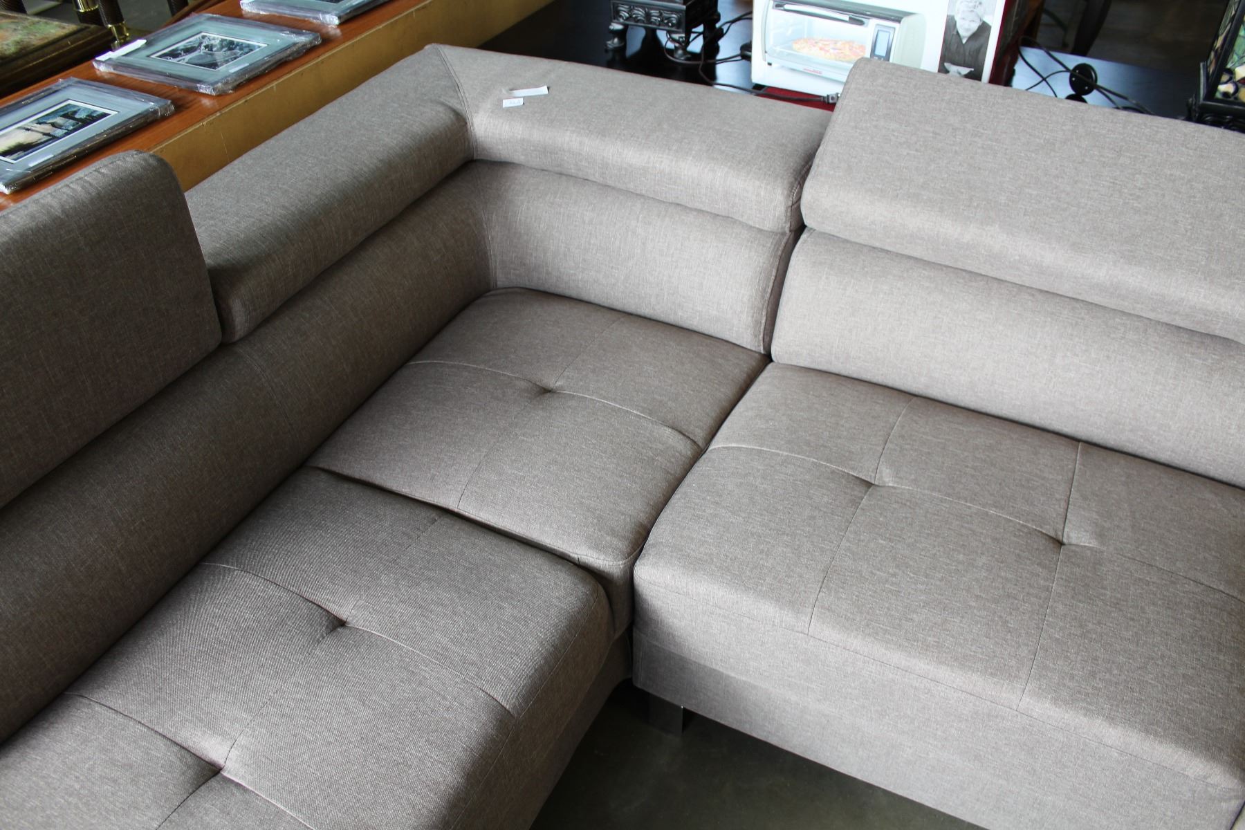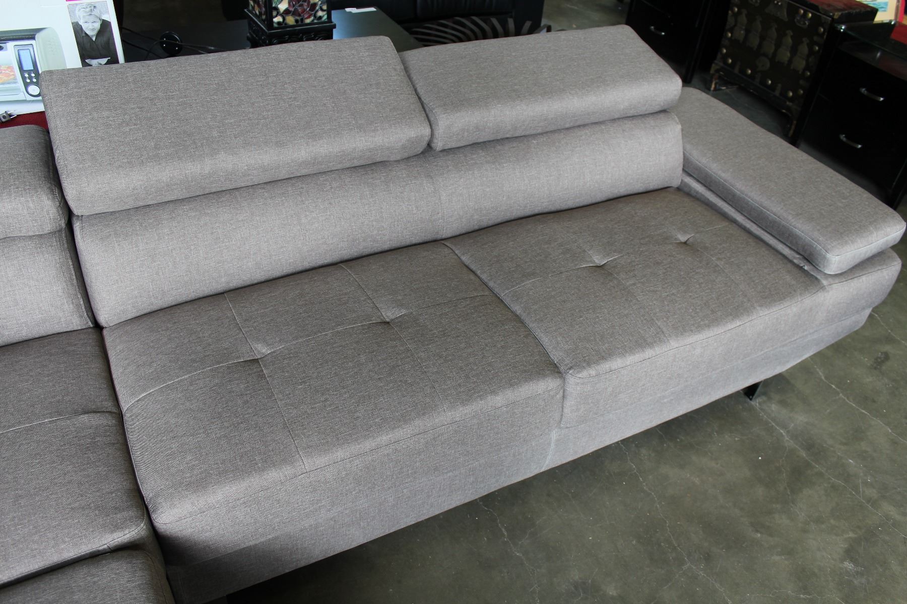 BRAND NEW MODERN 2 PIECE SECTIONAL SOFA IN GREY FABRIC, WITH ADJUSTABLE HEAD REST, RETAIL $2499