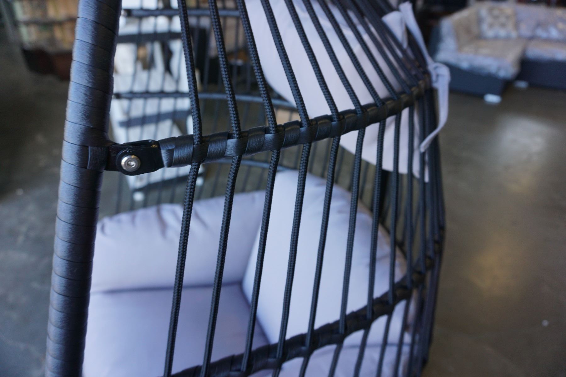 BRAND NEW OUTDOOR MODERN FOLDABLE HANGING CHAIR W/ GREY CUSHIONS - RETAIL $949 AND RATED FOR 300LBS
