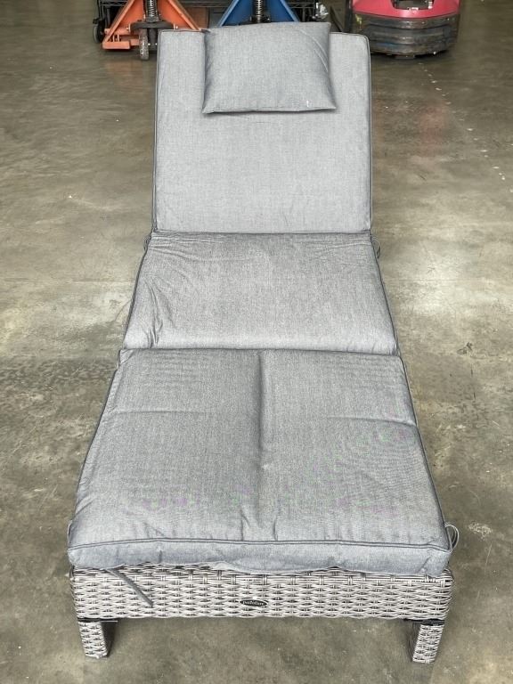 BRAND NEW PATIO FLARE 'LAURA' GREY SUN LOUNGER, WITH CUSHION AND NECK PILLOW, ADJUSTABLE, RETAIL $489