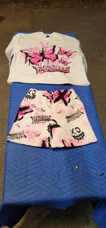 BRAND NEW PINK ABYSS 2PC OUTFIT CREW SHIRT AND SHORTS RETAIL $100