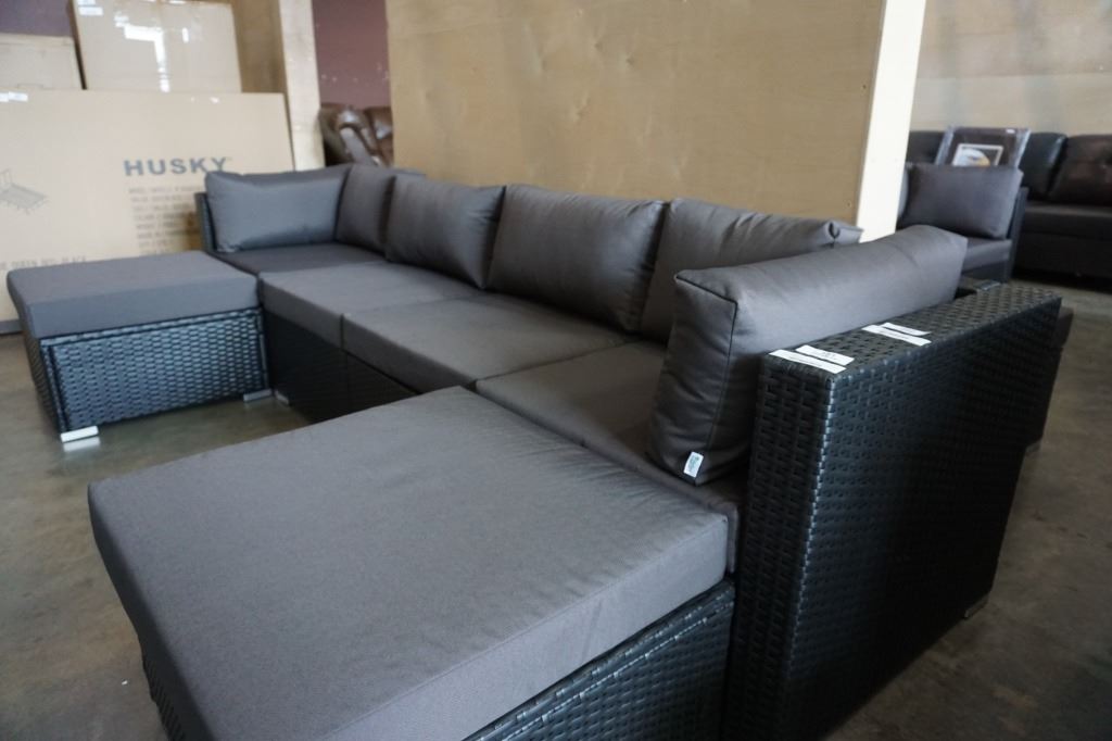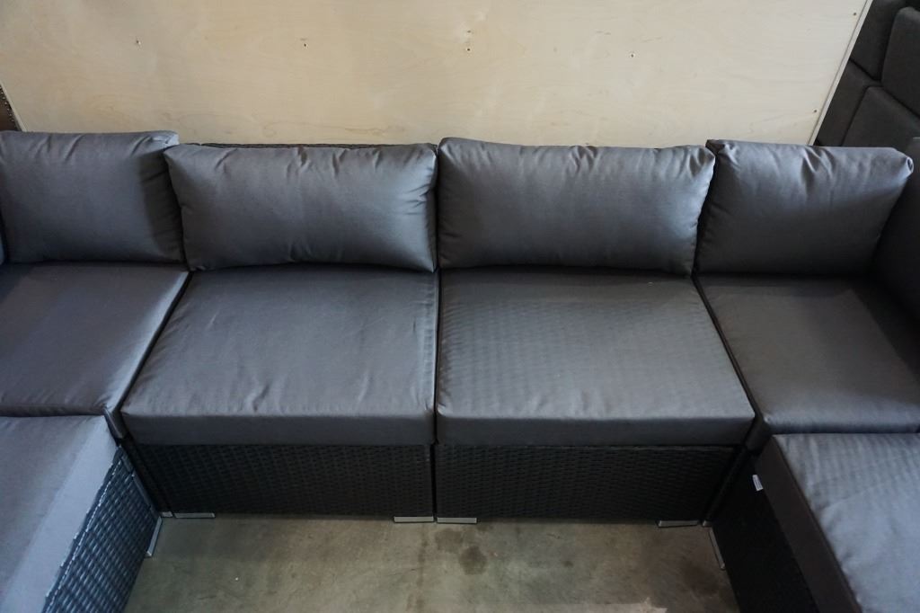 BRAND NEW PREMIUM RATTAN OUTDOOR 6 PIECE MODULAR SECTIONAL SOFA W/ DARK GREY CUSHIONS - RETAIL $1499 POWDER COATED STEEL FRAME AND REMOVABLE WASHABLE CUSHIONS