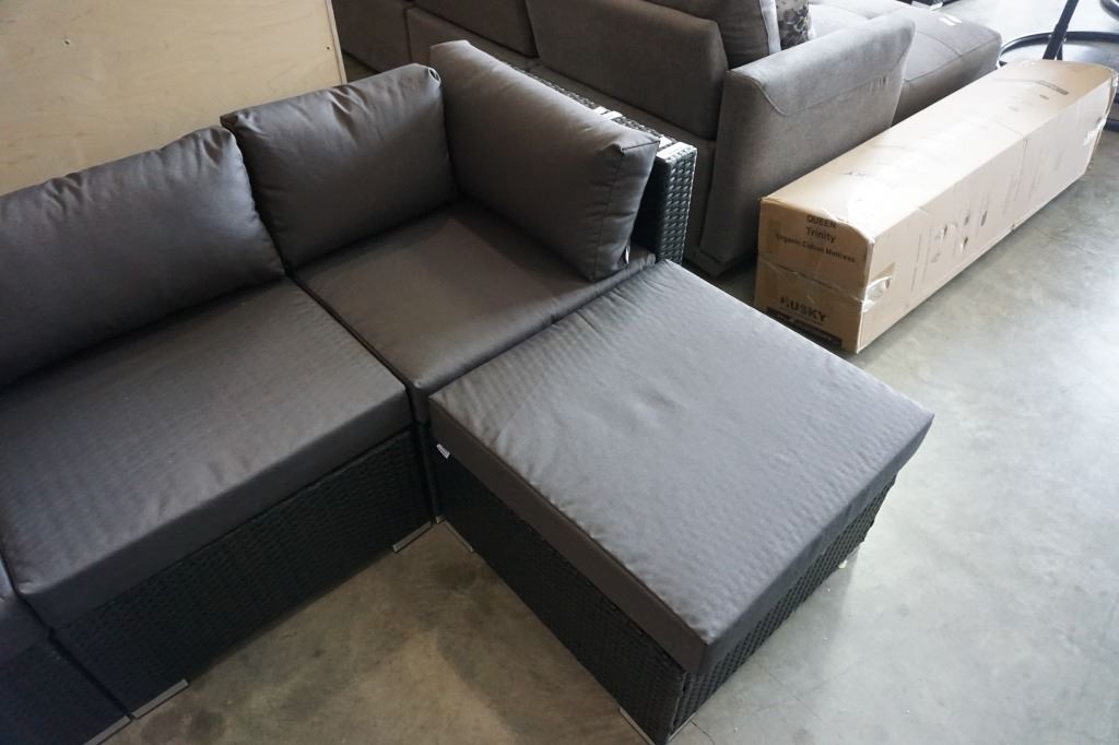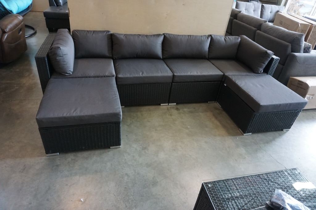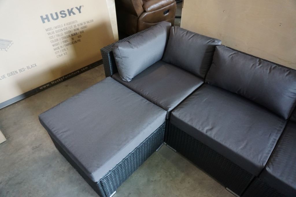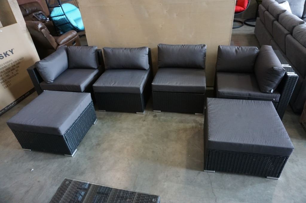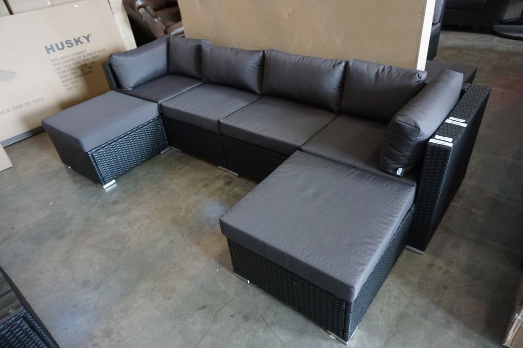 BRAND NEW PREMIUM RATTAN OUTDOOR 6 PIECE MODULAR SECTIONAL SOFA W/ DARK GREY CUSHIONS - RETAIL $1499 POWDER COATED STEEL FRAME AND REMOVABLE WASHABLE CUSHIONS