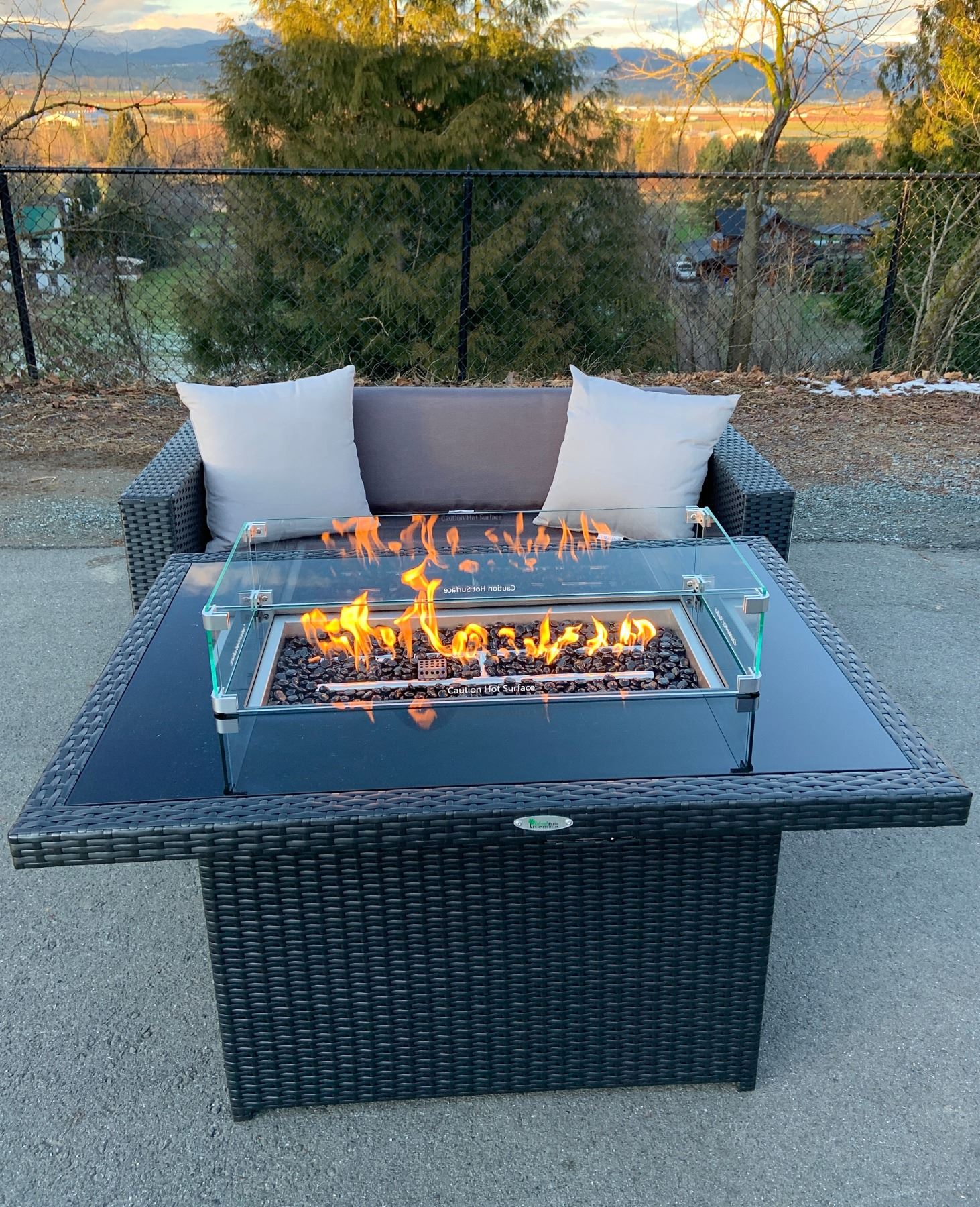 BRAND NEW RATTAN AND GLASS TOP FIRE TABLE RETAIL $999, 55,000 BTU, CSA APPROVED CAN BE CONVERTED TO NATURAL GAS 44" X 32" X 23" TALL
