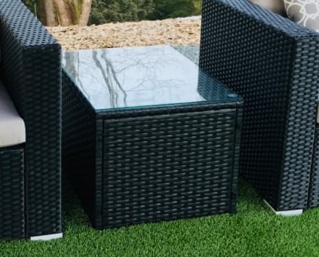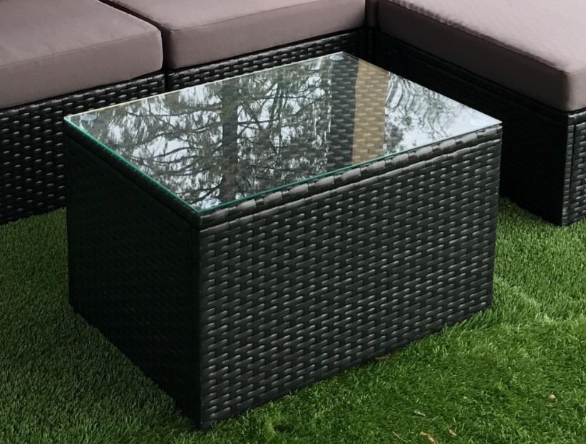 BRAND NEW RATTAN AND GLASS TOP PATIO COFFEE TABLE RETAIL $159 28" X 20" X 17"