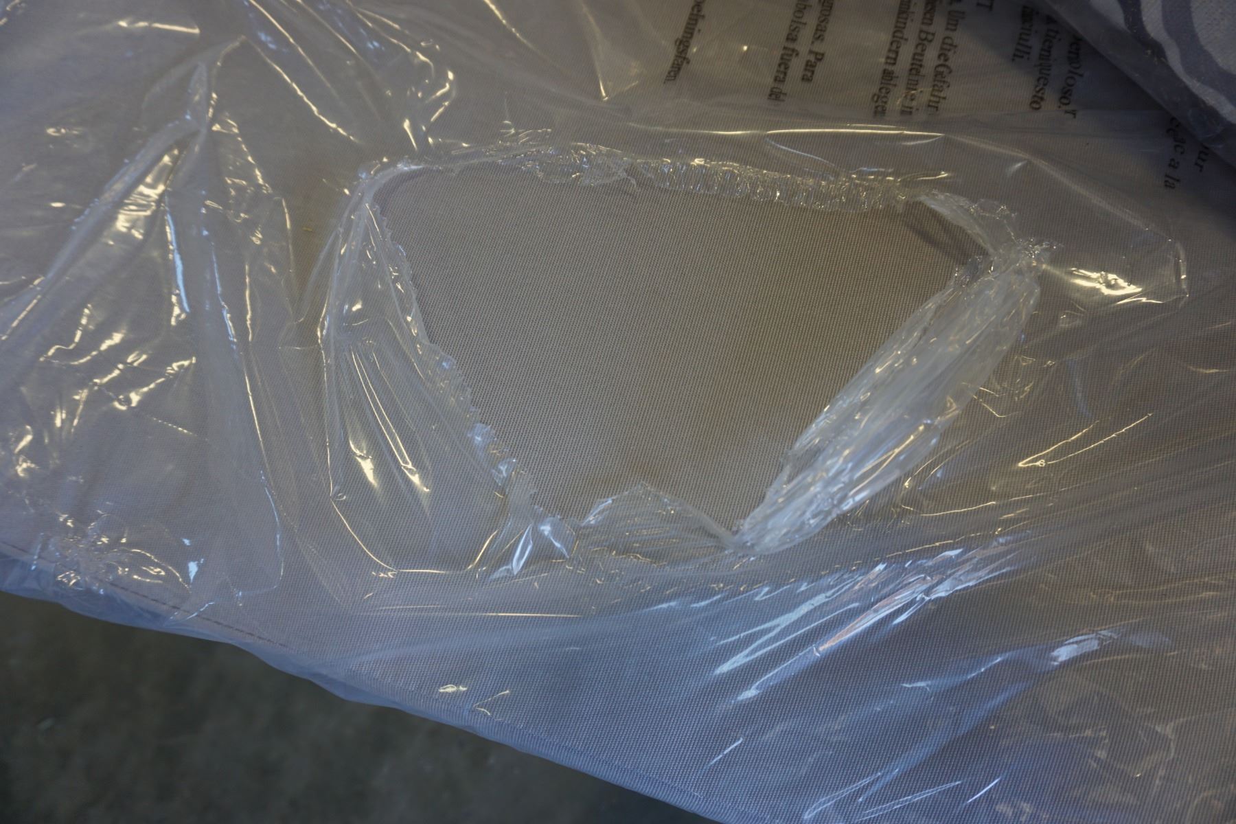 BRAND NEW RATTAN PATIO GIANT "L" SHAPE OUTDOOR RATTAN SECTIONAL 114"x89", ALUMINUM FRAME, LIGHT GREY CUSHIONS W/ GLASS TOP COFFEE TABLE 43"x24" AND 3 THROW PILLOWS - RETAIL $2299
