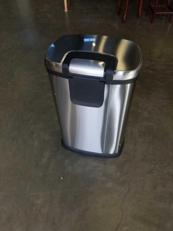 BRAND NEW SEALED STAINLESS SOFT CLOSE TRASH CAN, 50 LITRE, 13 GAL, REMOVABLE LINER