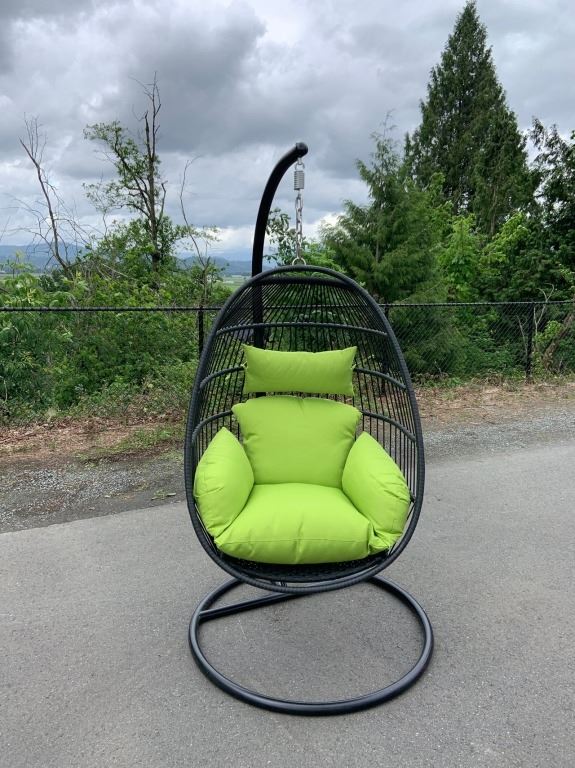 BRAND NEW SINGLE HANGING EGG CHAIR - RETAIL $949 W/ NECK PILLOW, FOLDABLE FRAME, POWDER COATED STEEL FRAME, RATED FOR 300LBS