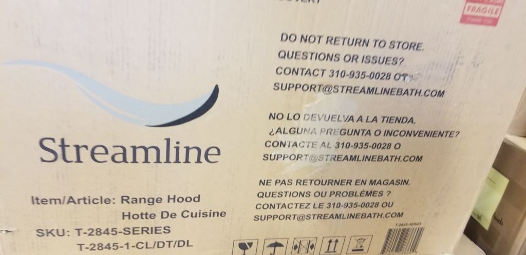 BRAND NEW STREAMLINE STAINLESS RANGE HOOD MODEL T--2845-1-CL/DT/DL