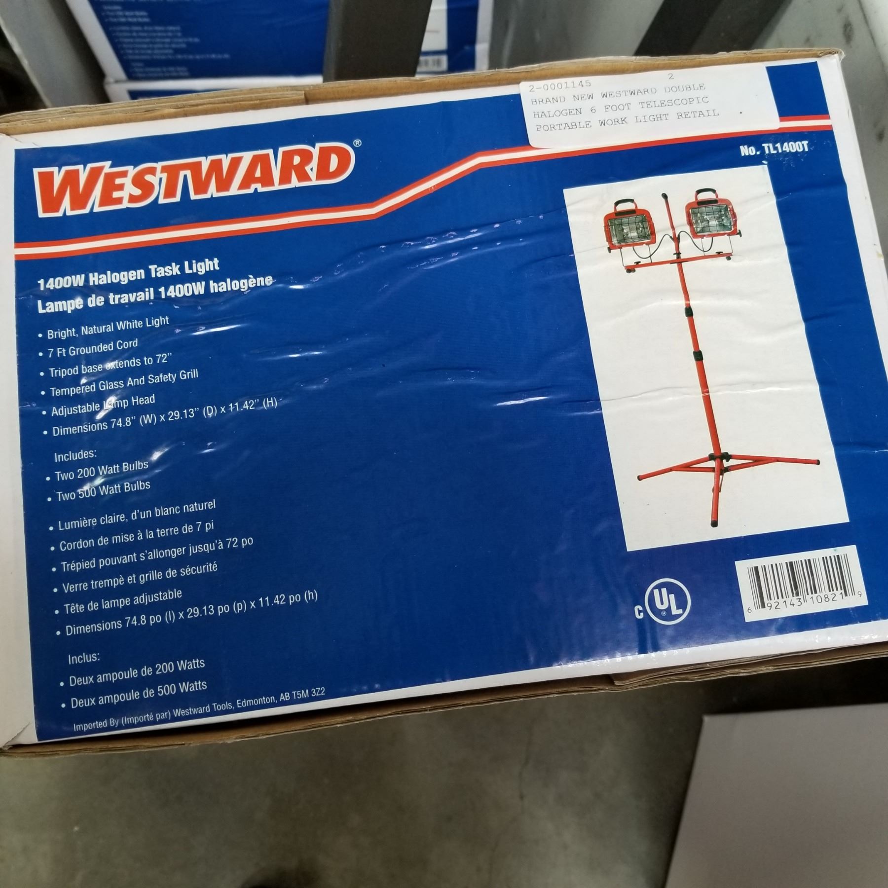 BRAND NEW WESTWARD DOUBLE HALOGEN 6 FOOT TELESCOPIC PORTABLE WORK LIGHT RETAIL $161 INCLUDES 2X500W AND 2X200W BULBS