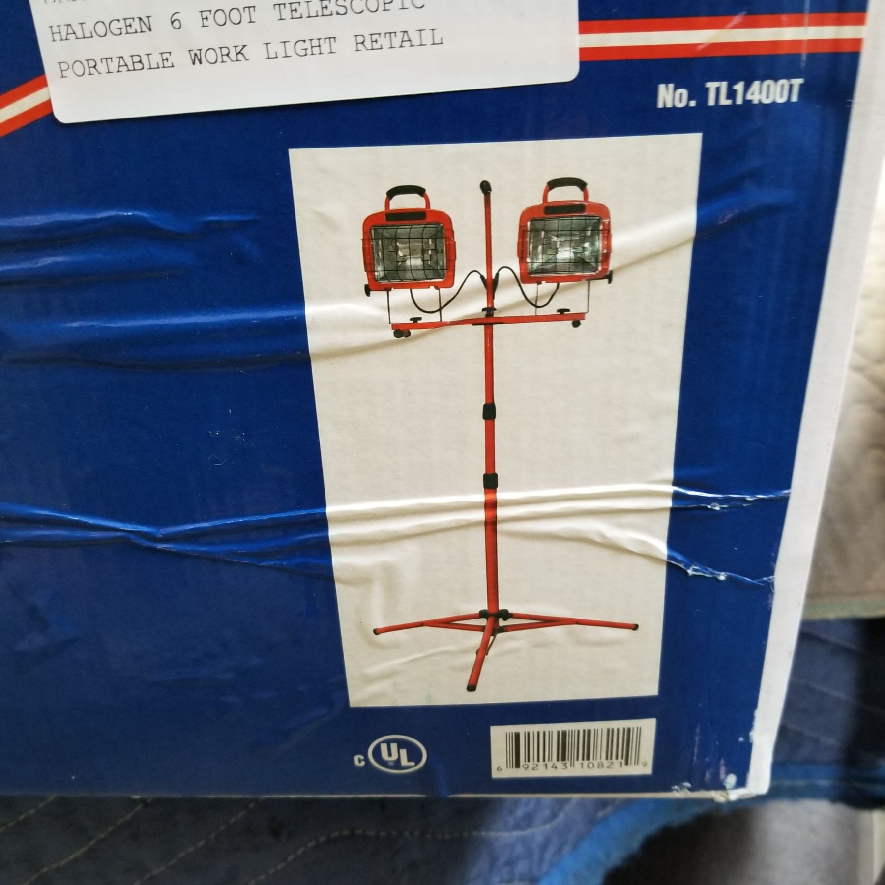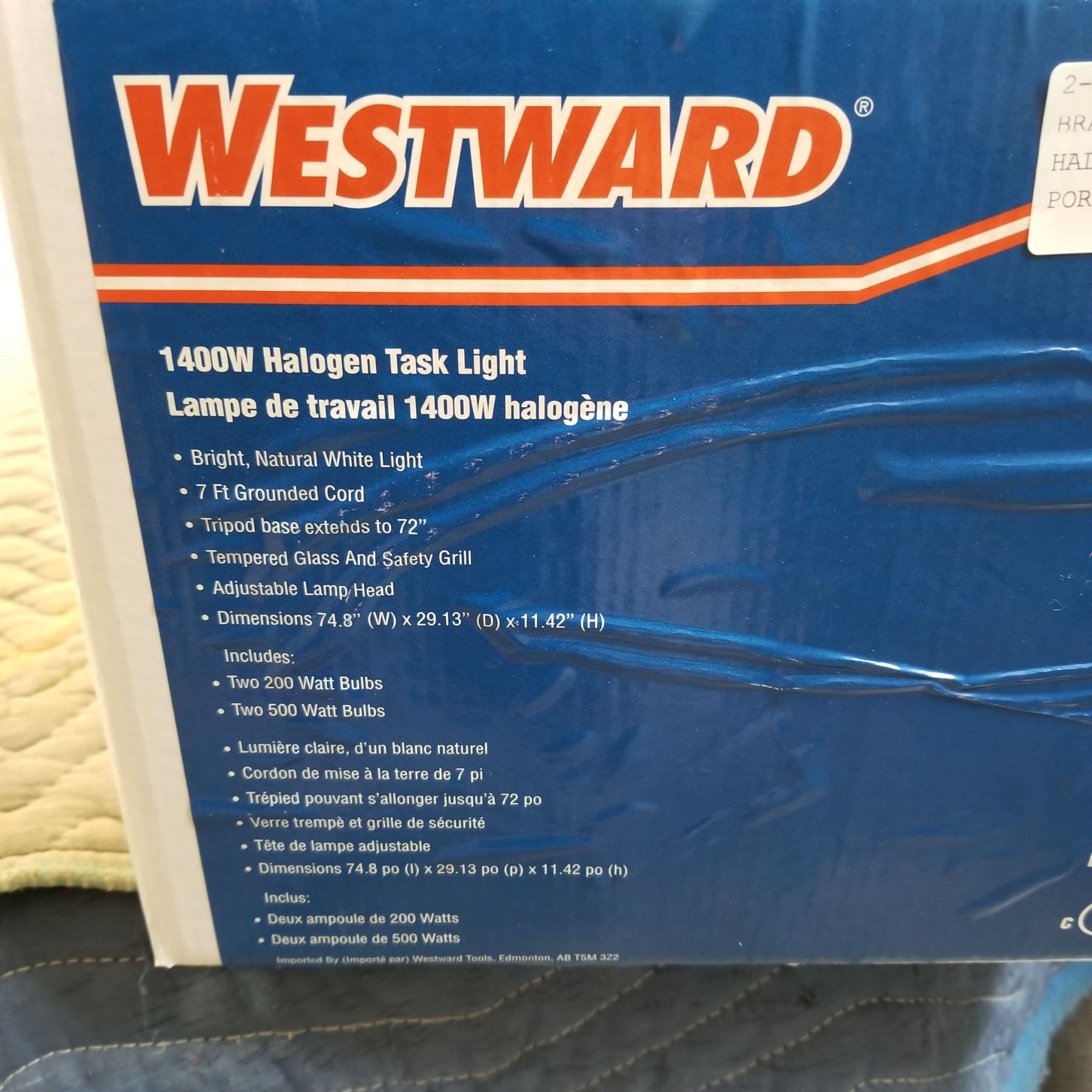 BRAND NEW WESTWARD DOUBLE HALOGEN 6 FOOT TELESCOPIC PORTABLE WORK LIGHT RETAIL $161 INCLUDES 2X500W AND 2X200W BULBS