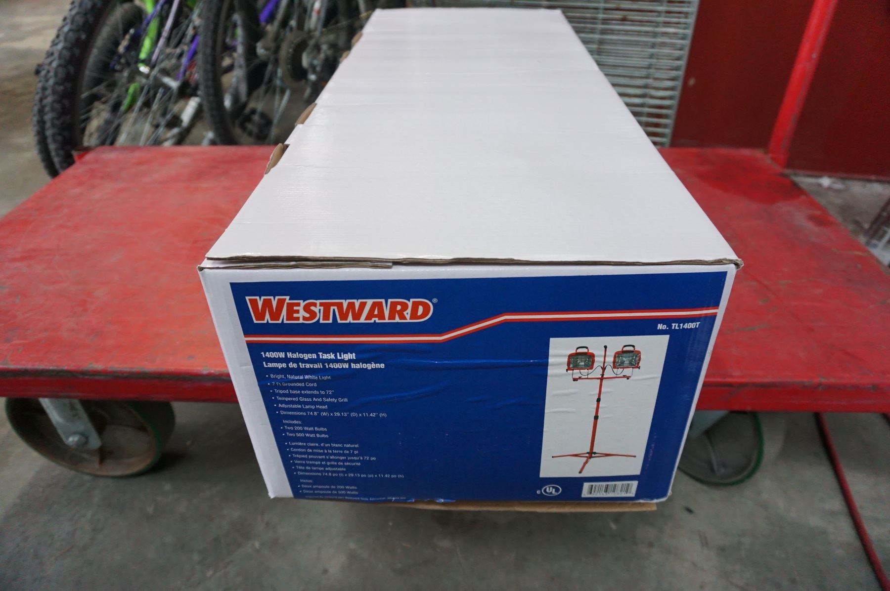 BRAND NEW WESTWARD DOUBLE HALOGEN 6 FOOT TELESCOPIC PORTABLE WORK LIGHT RETAIL $161 INCLUDES 2X500W AND 2X200W BULBS