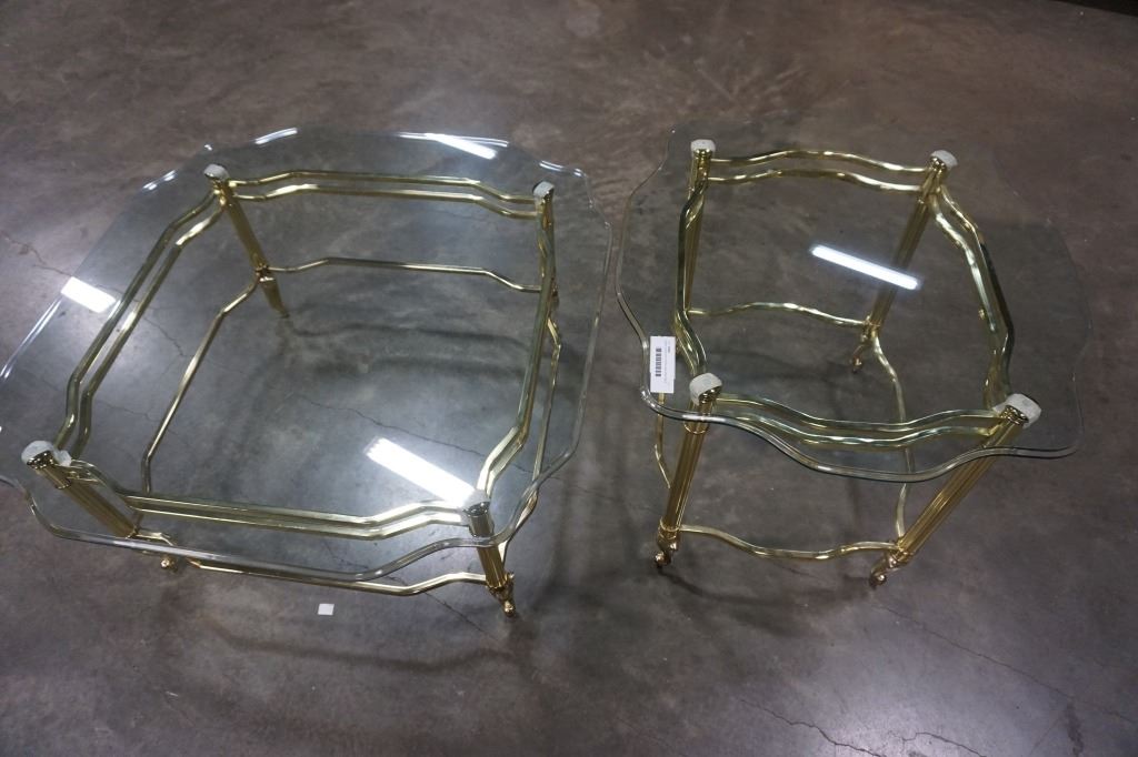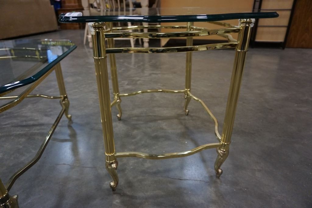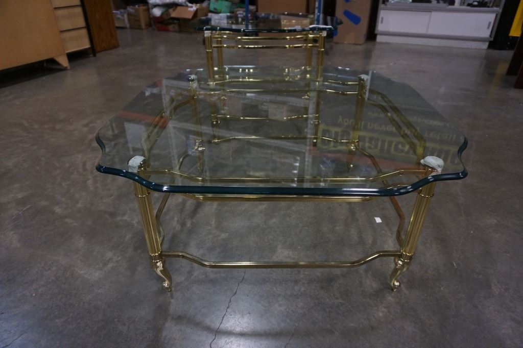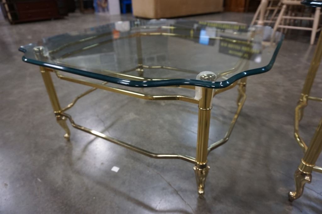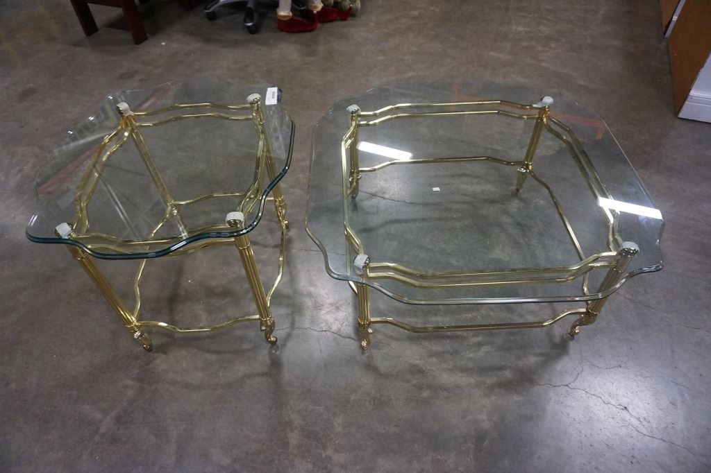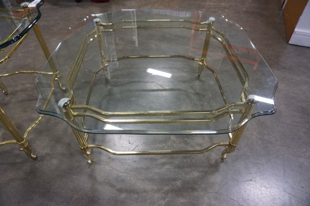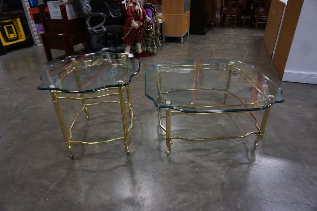 BRASS GLASSTOP COFFE AND ENDTABLE