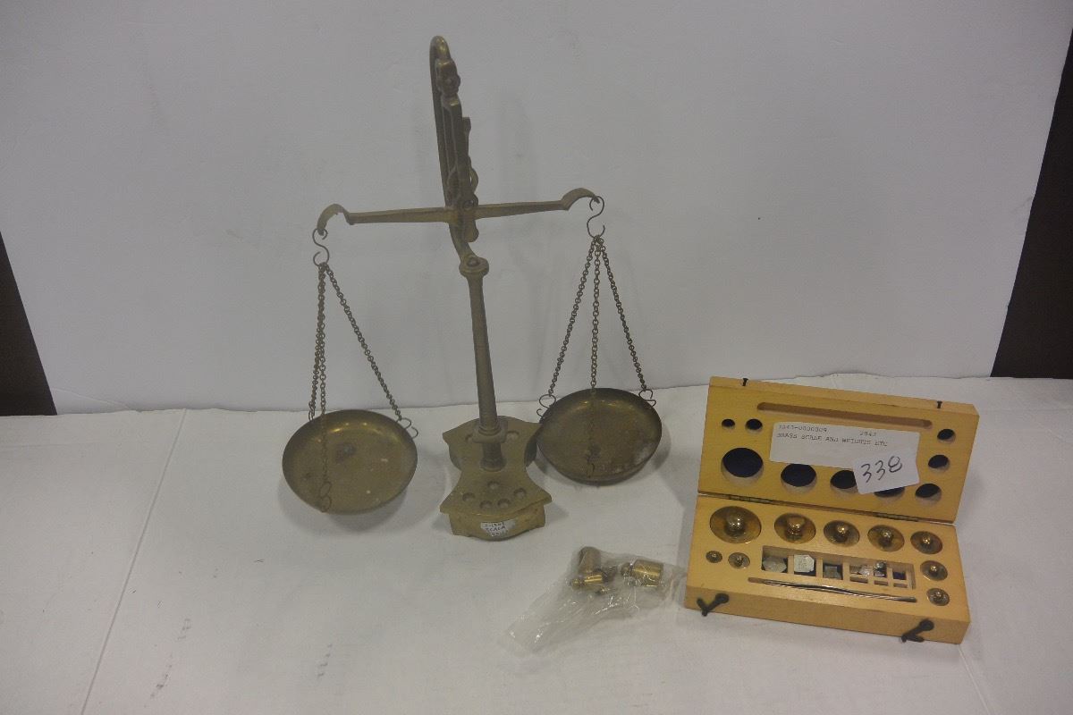 BRASS SCALE AND WEIGHTS ETC