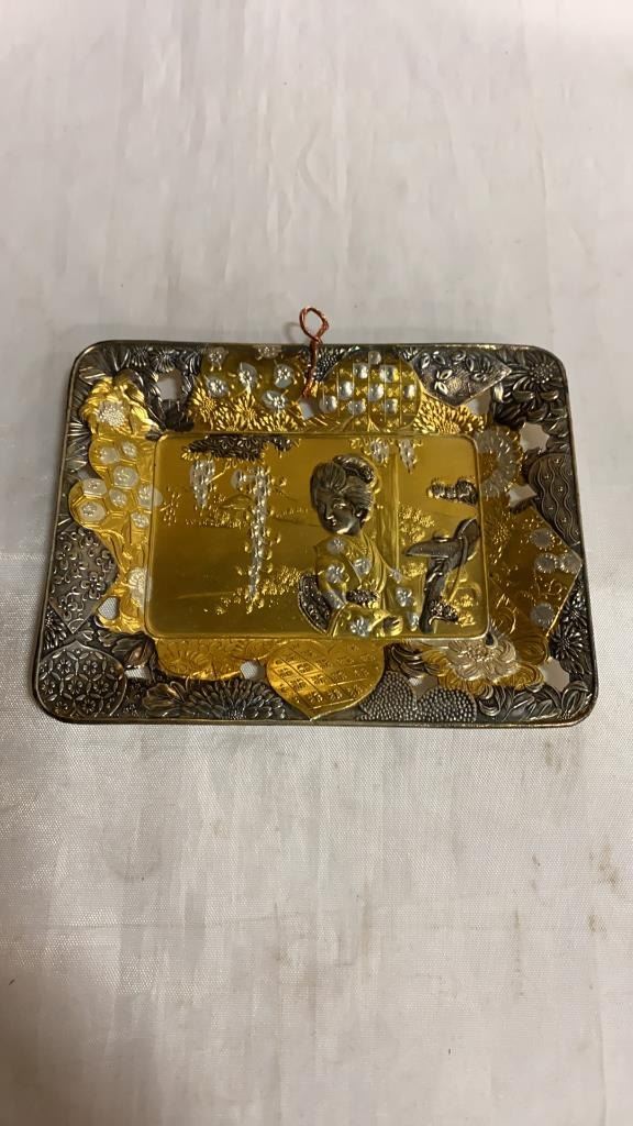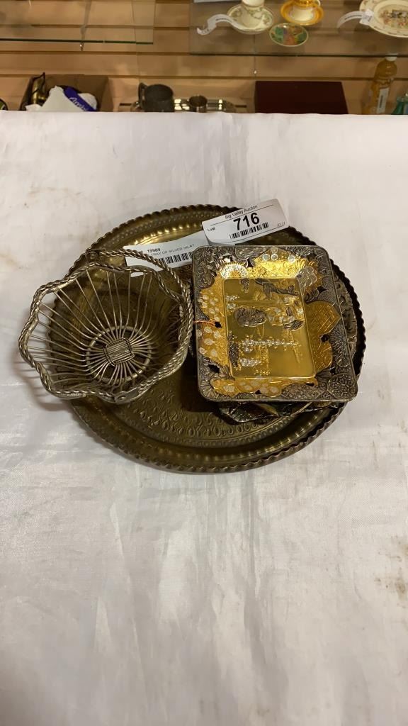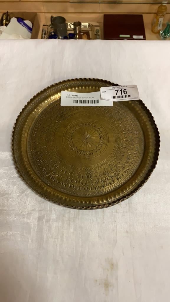BRASS TRAY OF SILVER INLAY COLLECTIBLES