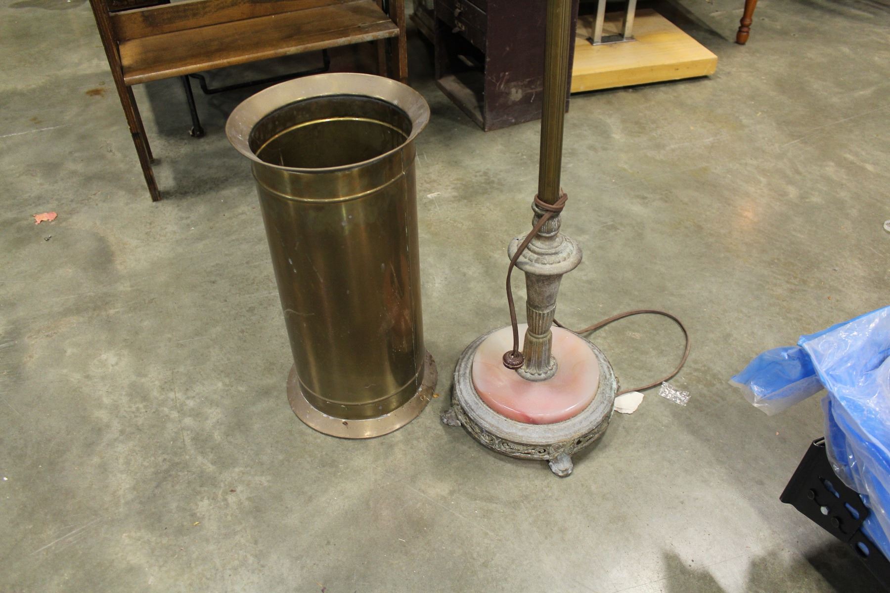 BRASS UMBRELLA STAND AND FLOOR LAMP
