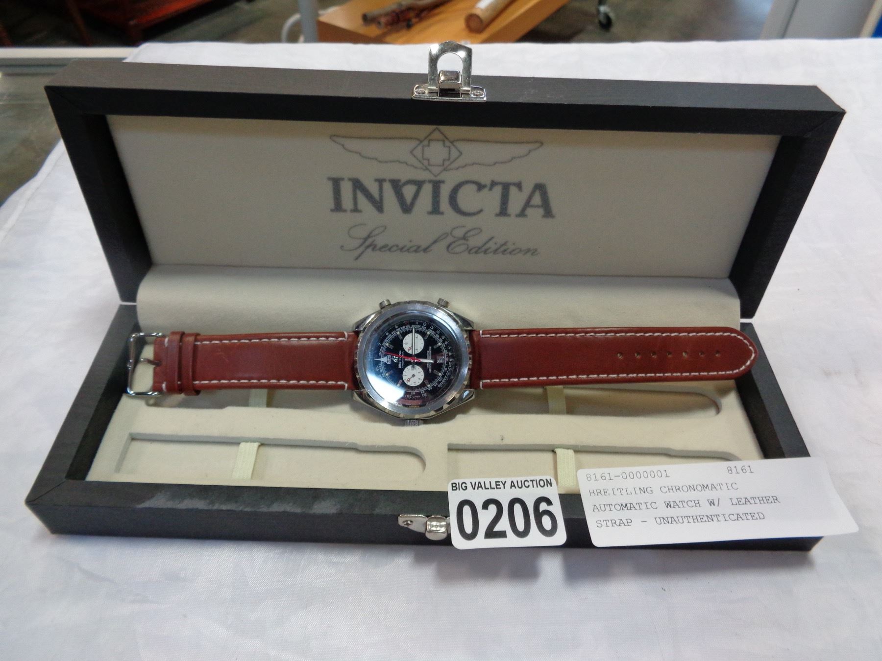 BREITLING CHRONOMATIC AUTOMATIC WATCH W/ LEATHER STRAP - UNAUTHENTICATED