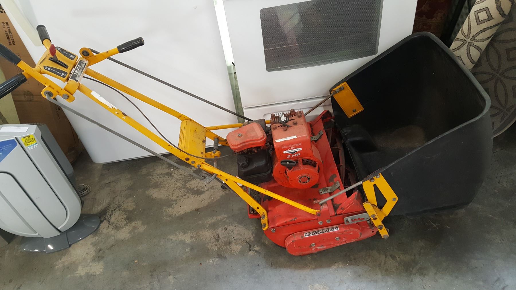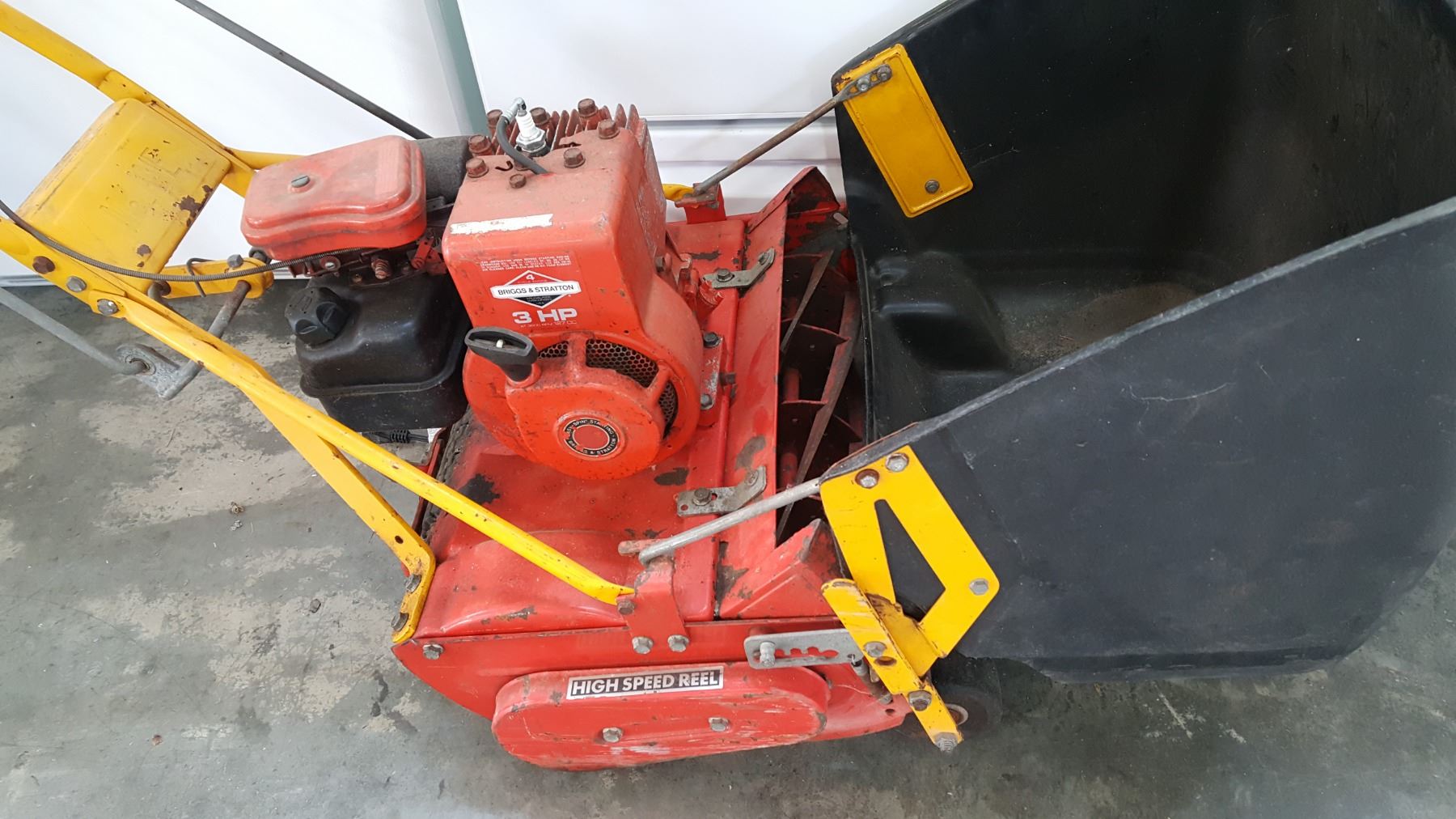 BRIGGS AND STRATTON 3HP HIGH SPEED REEL MOWER WITH CATCHER. 7 BLADE