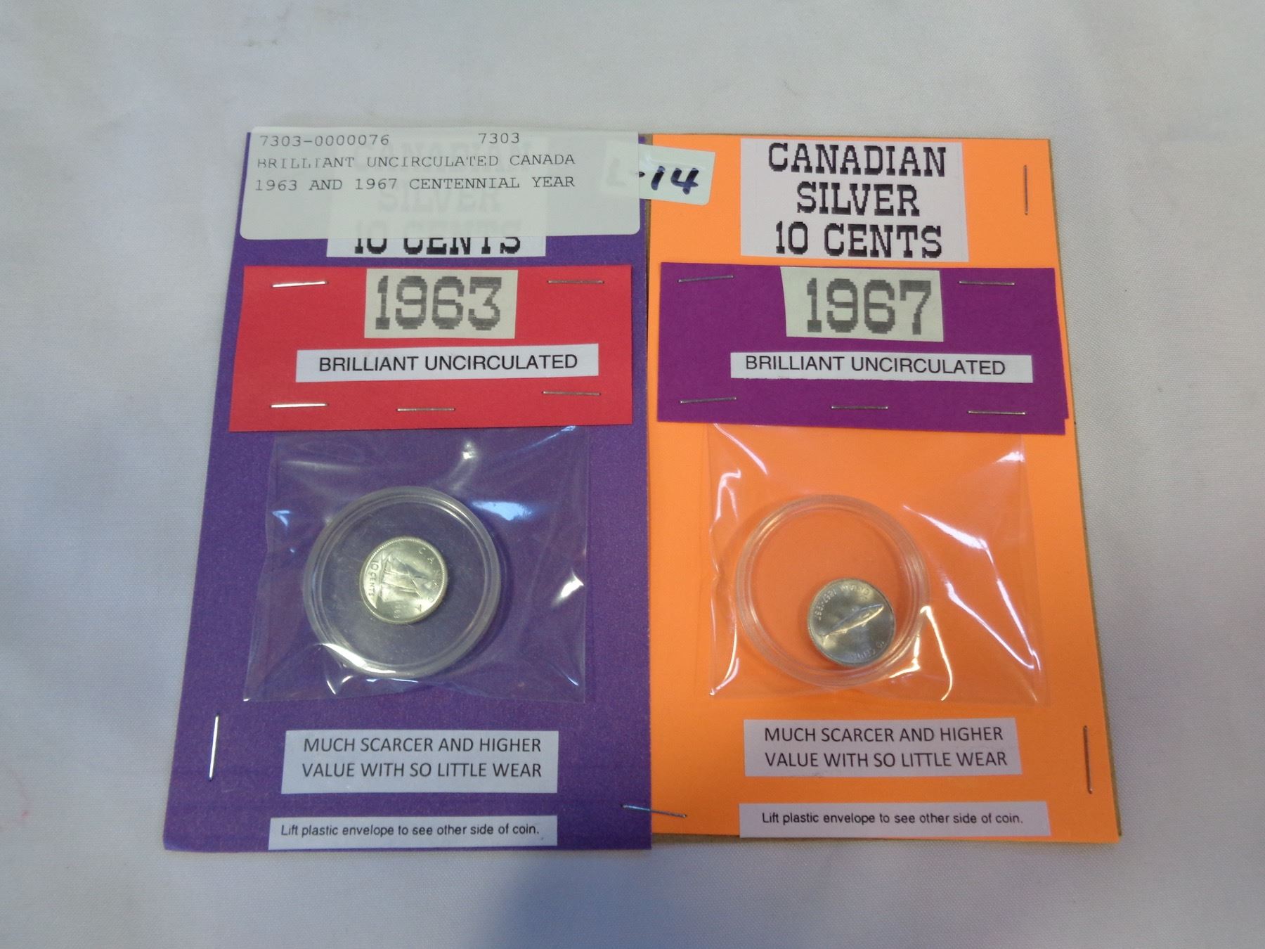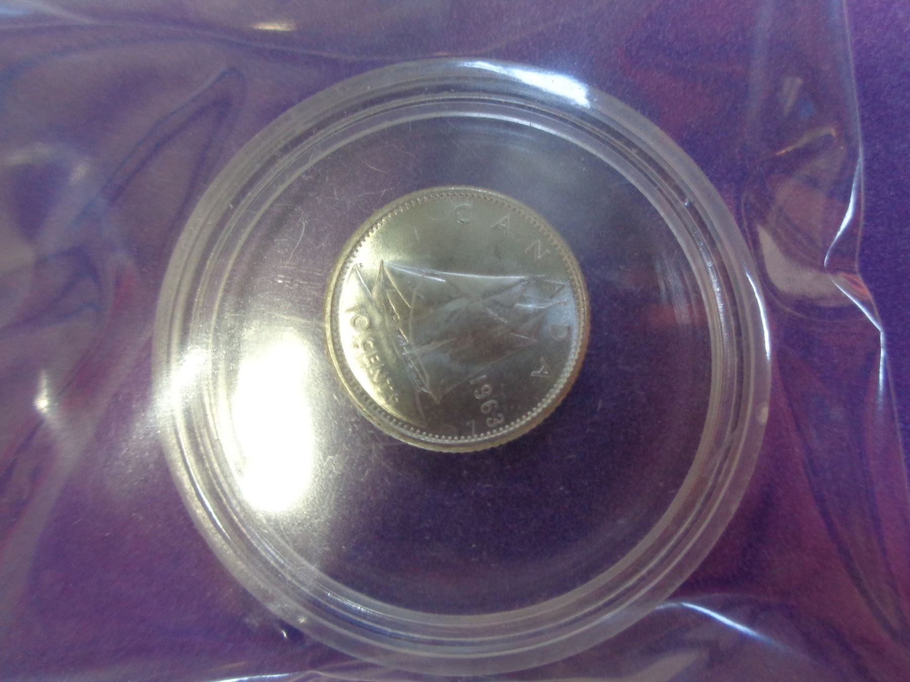 BRILLIANT UNCIRCULATED CANADA 1963 AND 1967 CENTENNIAL YEAR 10 CENT COINS