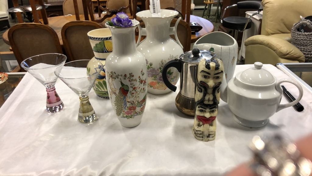 BRISTOL ENGLAND VASE, OTHER VASES COCKTAIL GLASSES, CANDLE, ITALY COFFEE MAKER