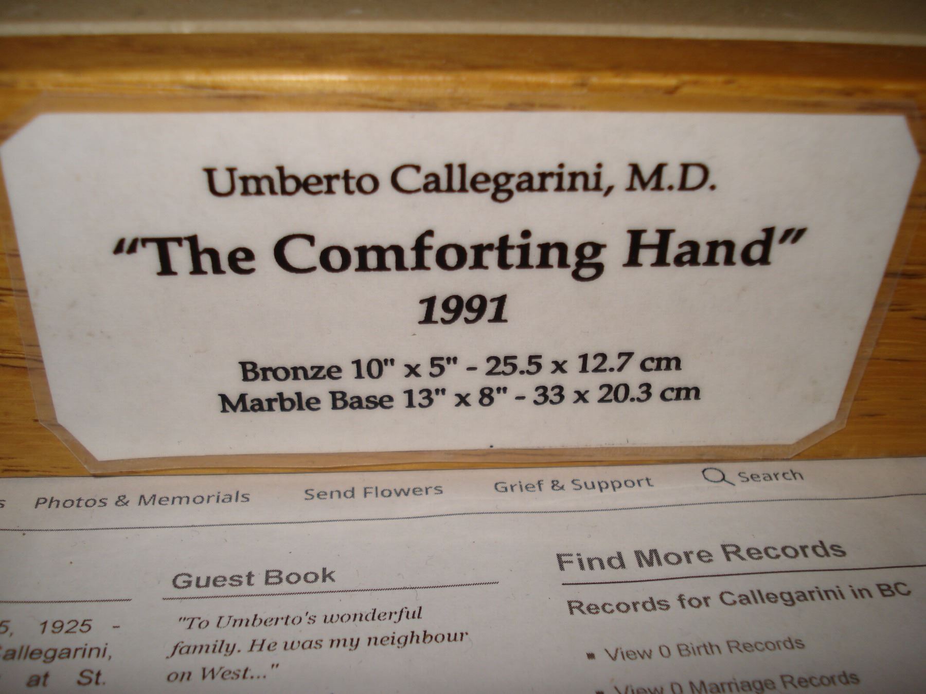 BRONZE LIMITED EDITION CAST THE COMFORTING HAND BY UMBERTO CALLEGARINI 1991
