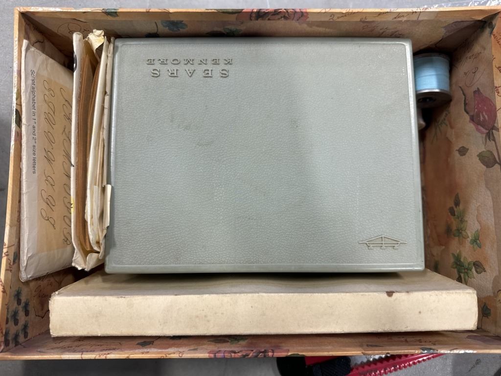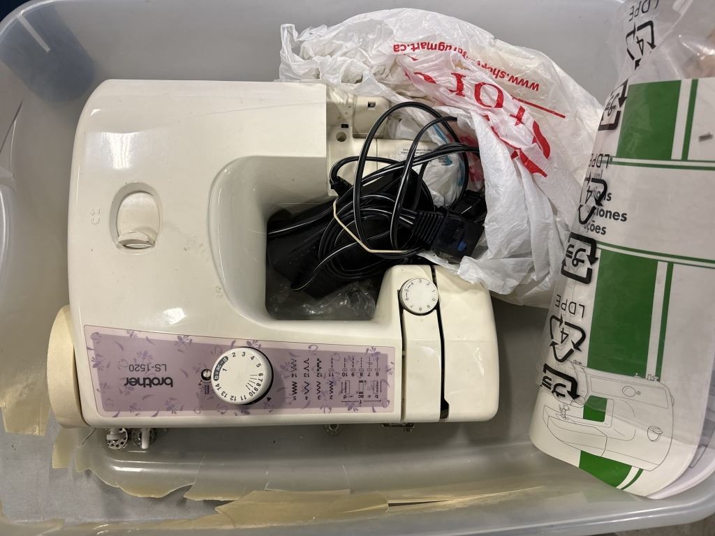 BROTHER SEWING MACHINE AND BOX OF SEWING ACCESSORIES