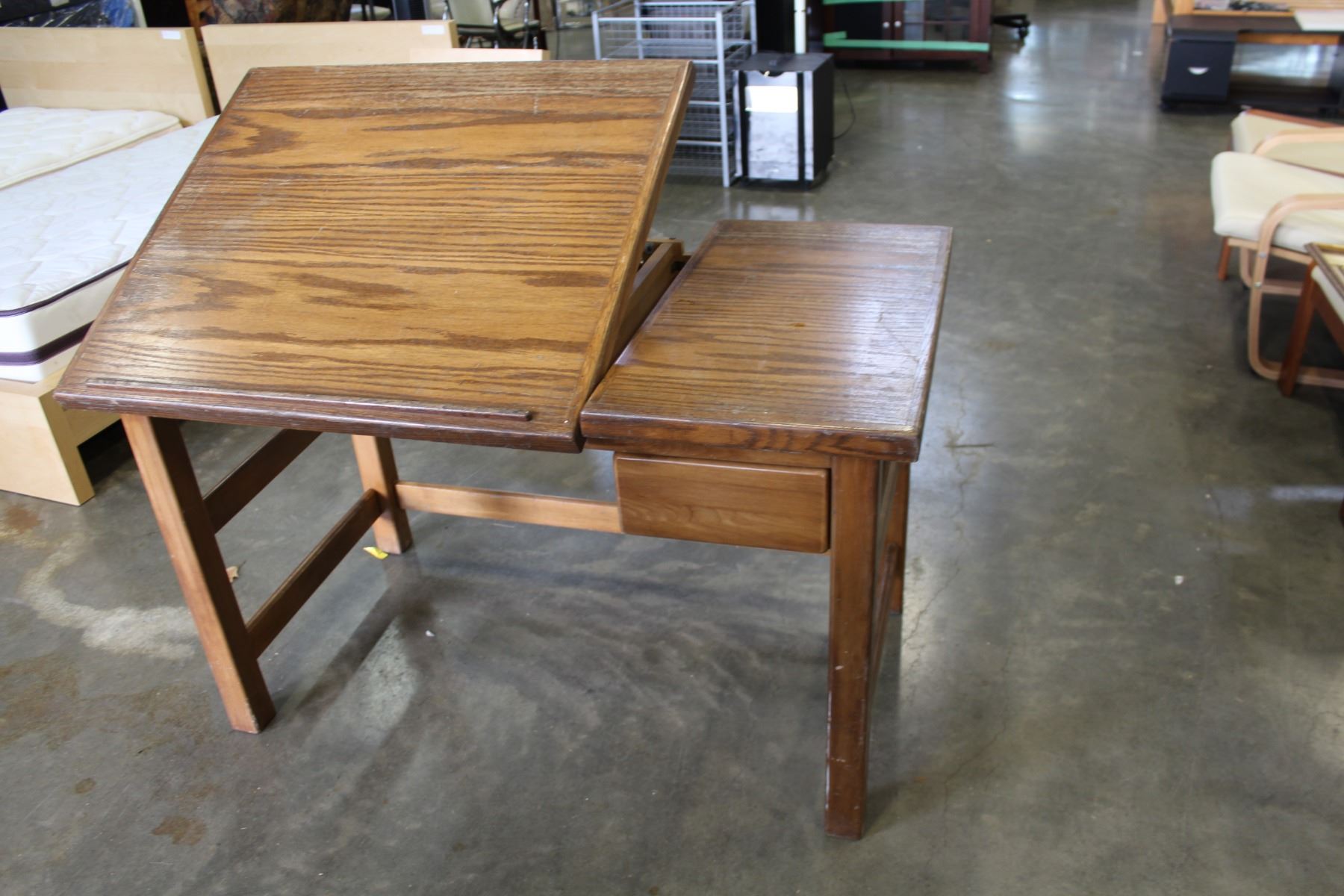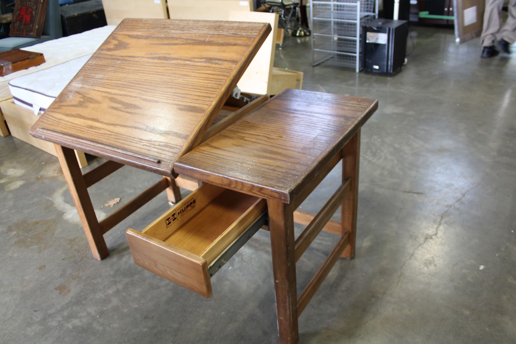 BROWN LIFT TOP DRAFTING OR CRAFT TABLE