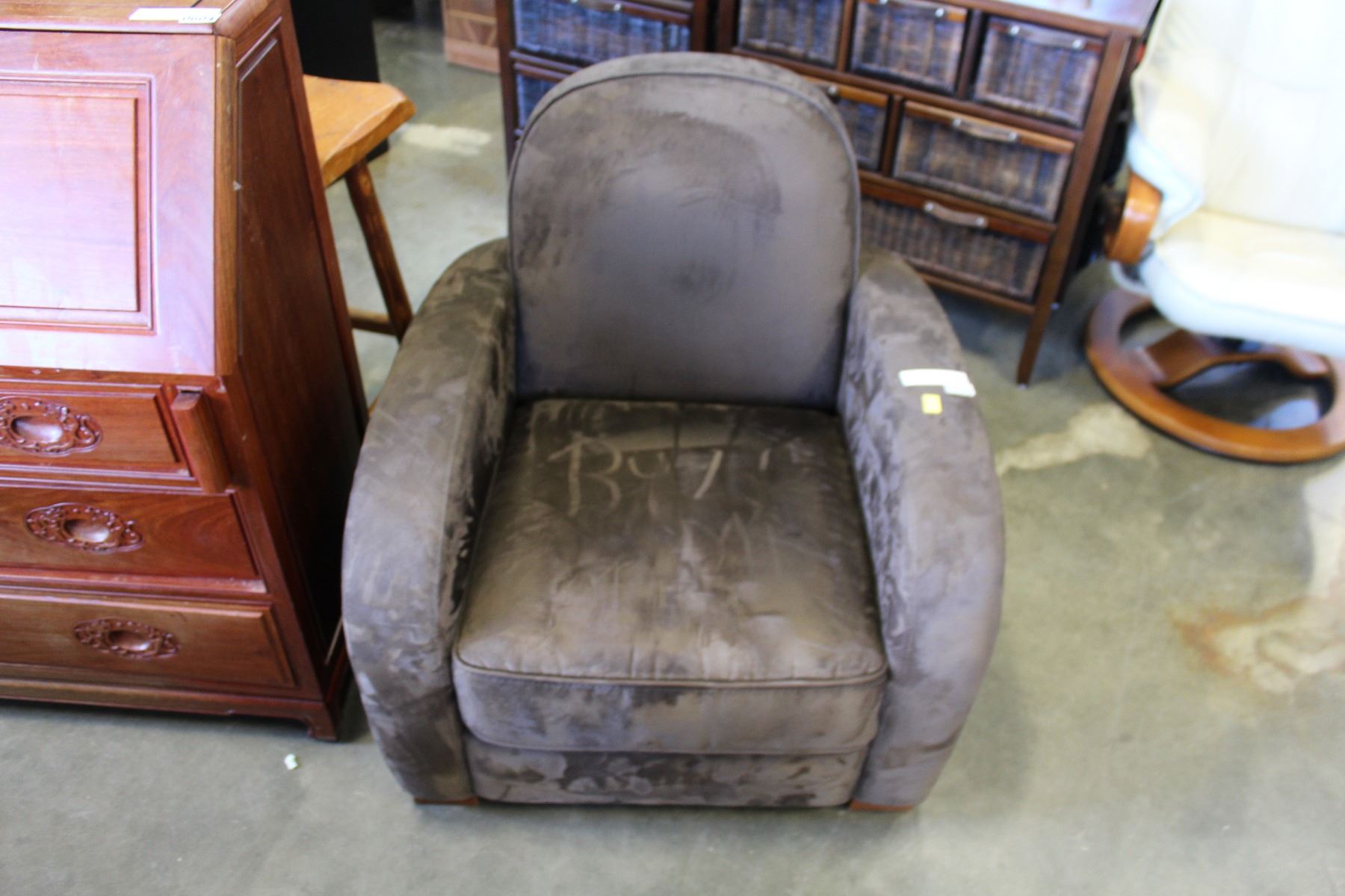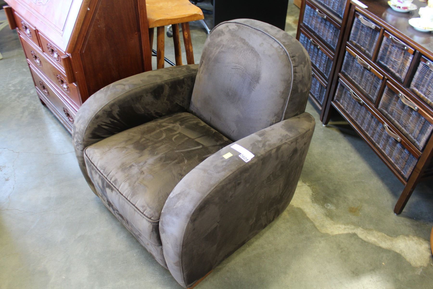 BROWN MICROFIBER ARM CHAIR
