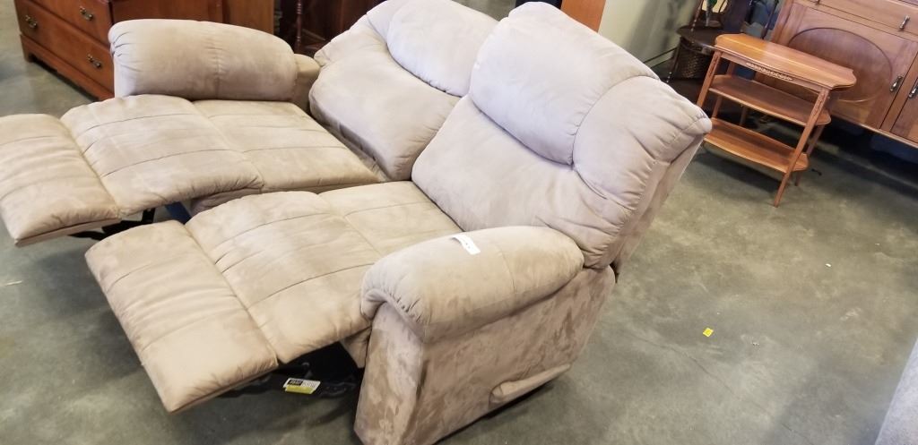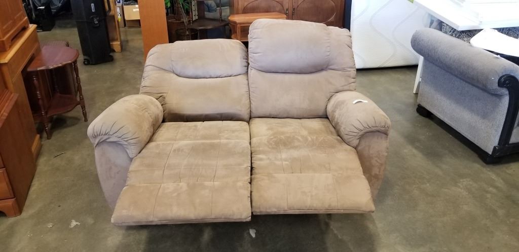 BROWN MICROFIBRE DOUBLE RECLINING LOVESEAT