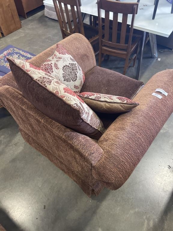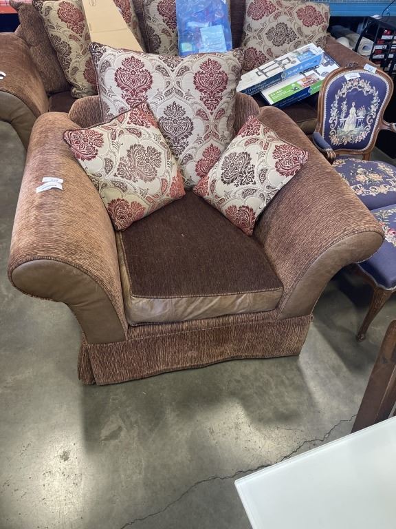 BROWN PILLOW BACK CHAIR WITH LEATHER ACCENTS