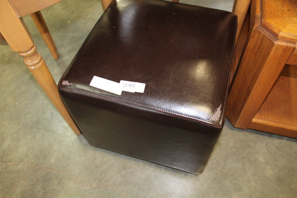 BROWN VINYL OTTOMAN