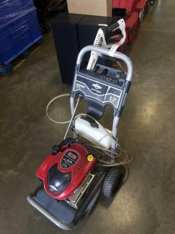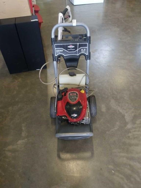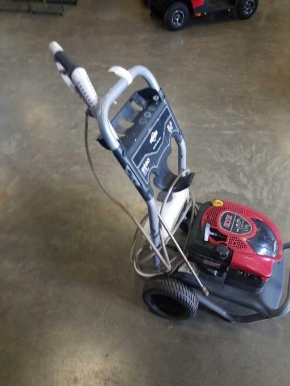 BRUGGS AND STRATTON 2550PSI GAS PRESSURE WASHER - WORKING, WAND NEEDS NEW SPRING