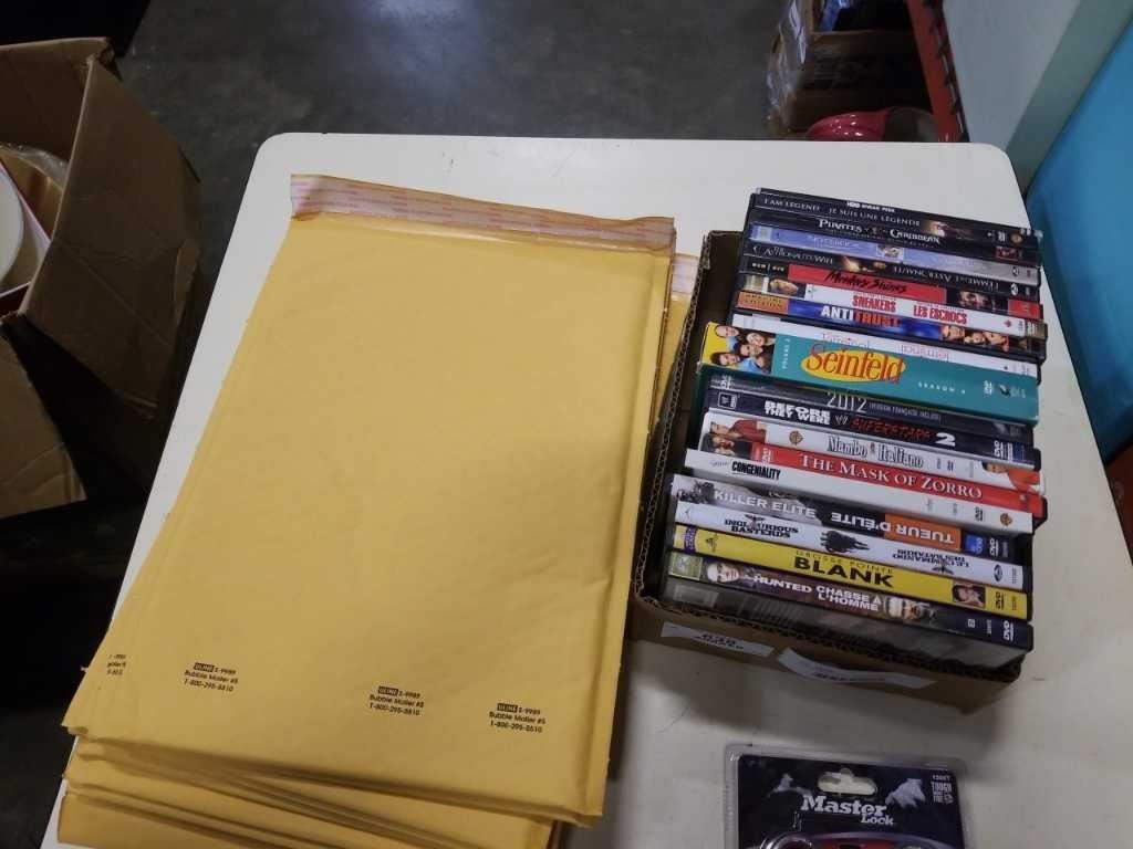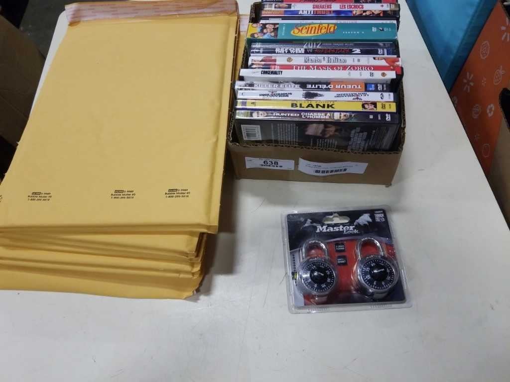 BUBLE ENVELOPES, DVDS AND MASTER LOCK COMBINATION LOCKS