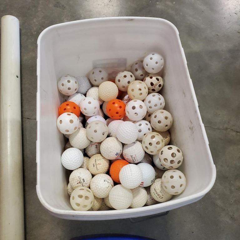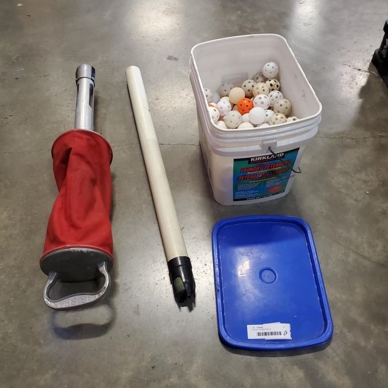 BUCKET OF GOLF BALLS W/ BALL SHAG