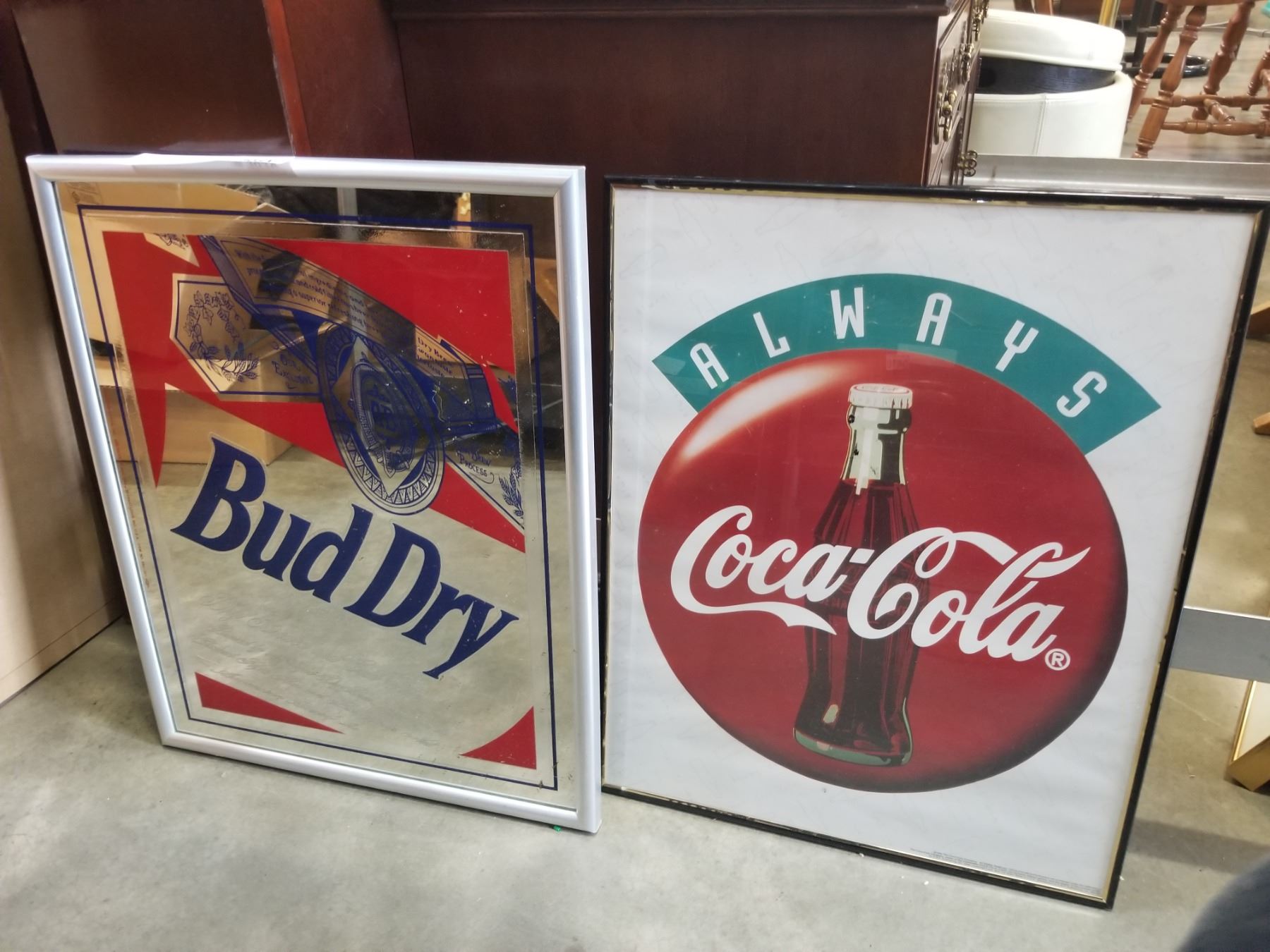 BUD DRY MIRRORED ADVERT AND COCA COLA PRINT