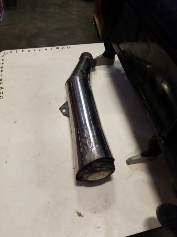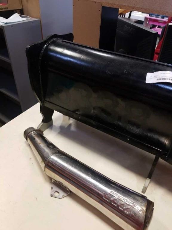 BULL FIGURE FULL SIZE MAILBOX AND SUPER TRAPP 1960 STAINLESS STEEL MOTORCYCLE MUFFLER