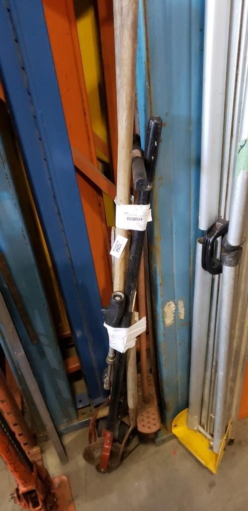 BUNDLE OF GARDEN TOOLS AND VINTAGE POGO STICK
