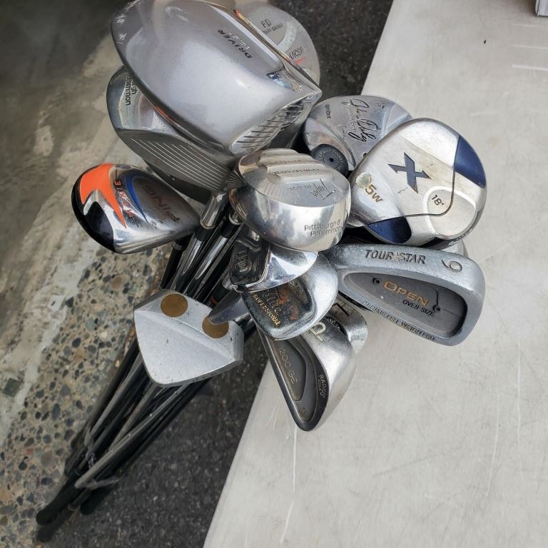 BUNDLE OF LEFT HANDED GOLF DRIVERS AND IRONS